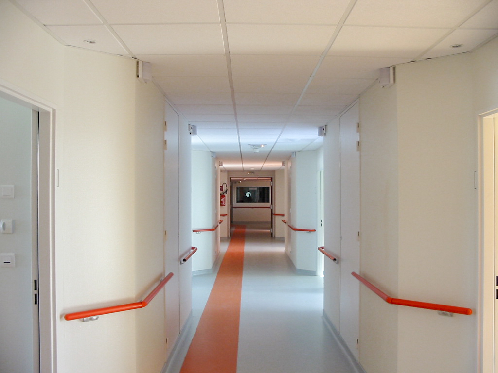 L’ensemble est relié à Hôpital par un volume de liaison bas à RDC au niveau de l’entrée principale et un volume vitré pour la cage d’escalier nord.