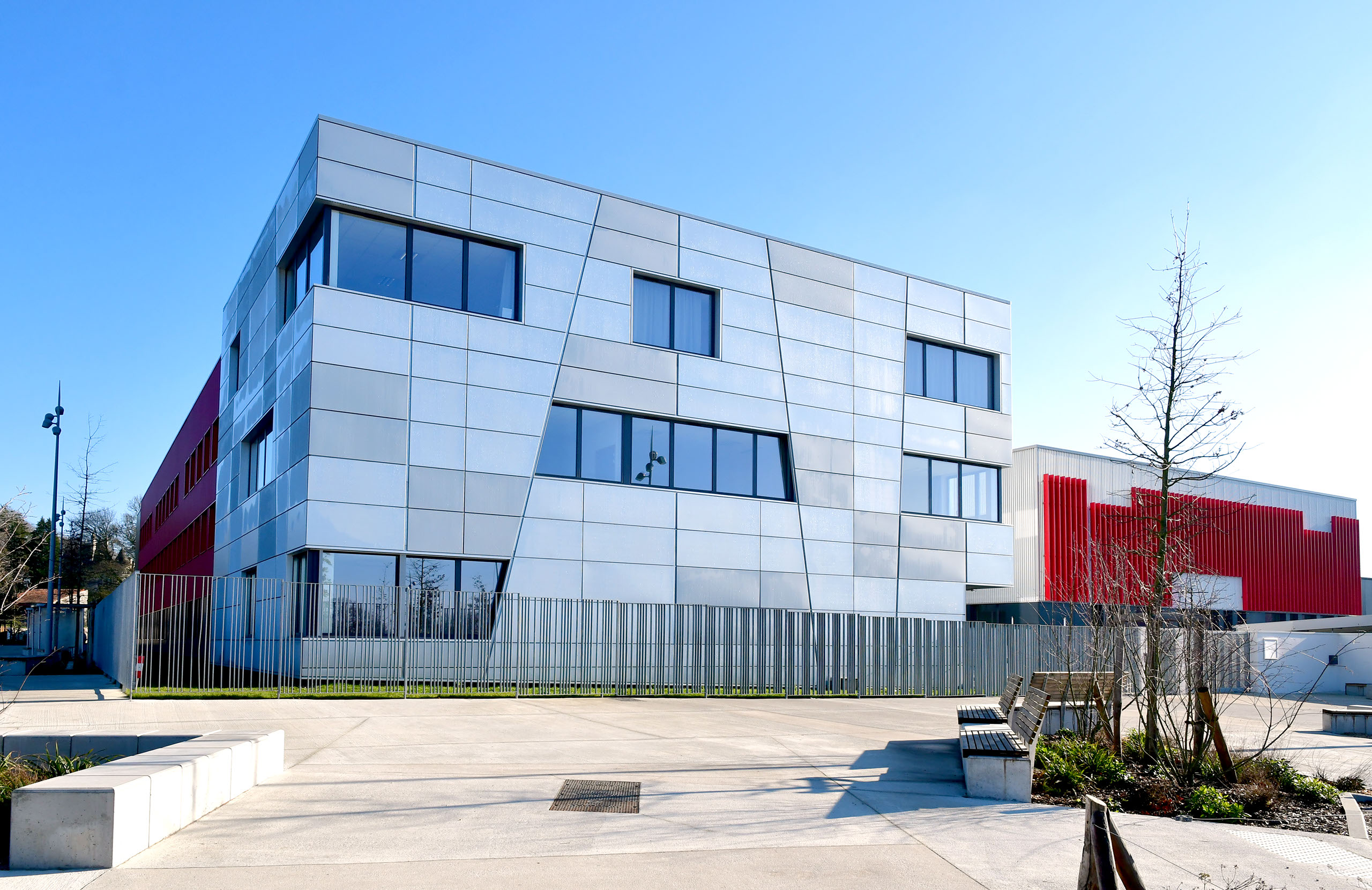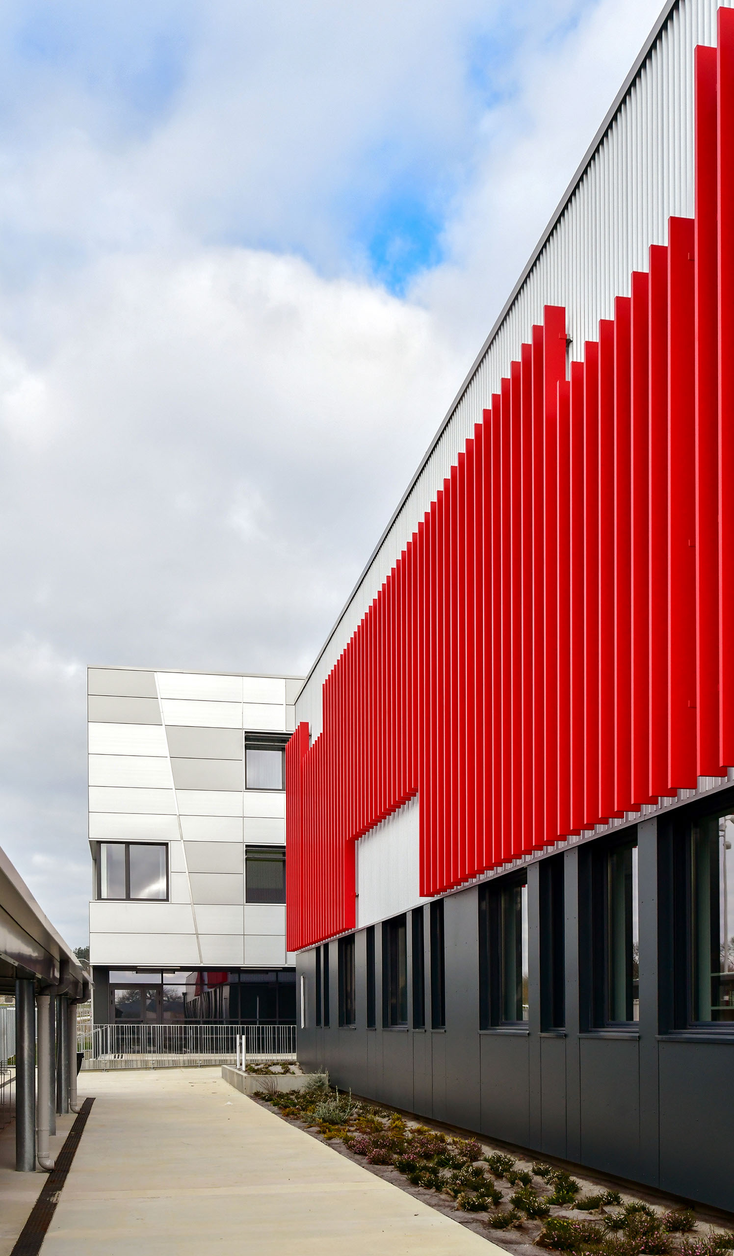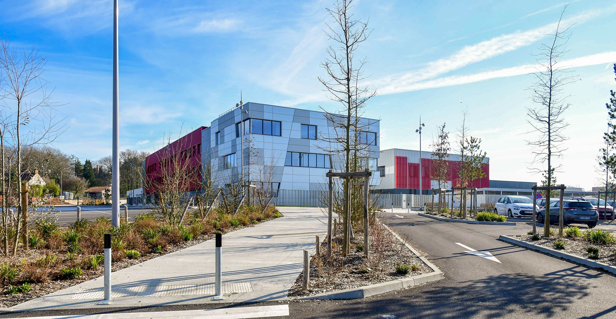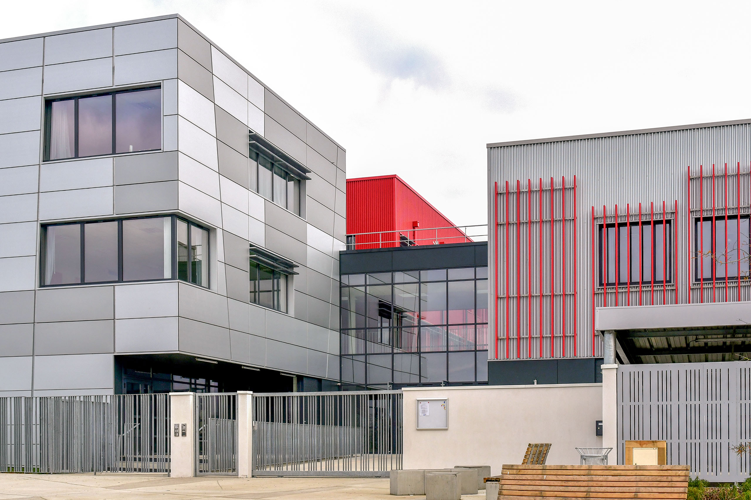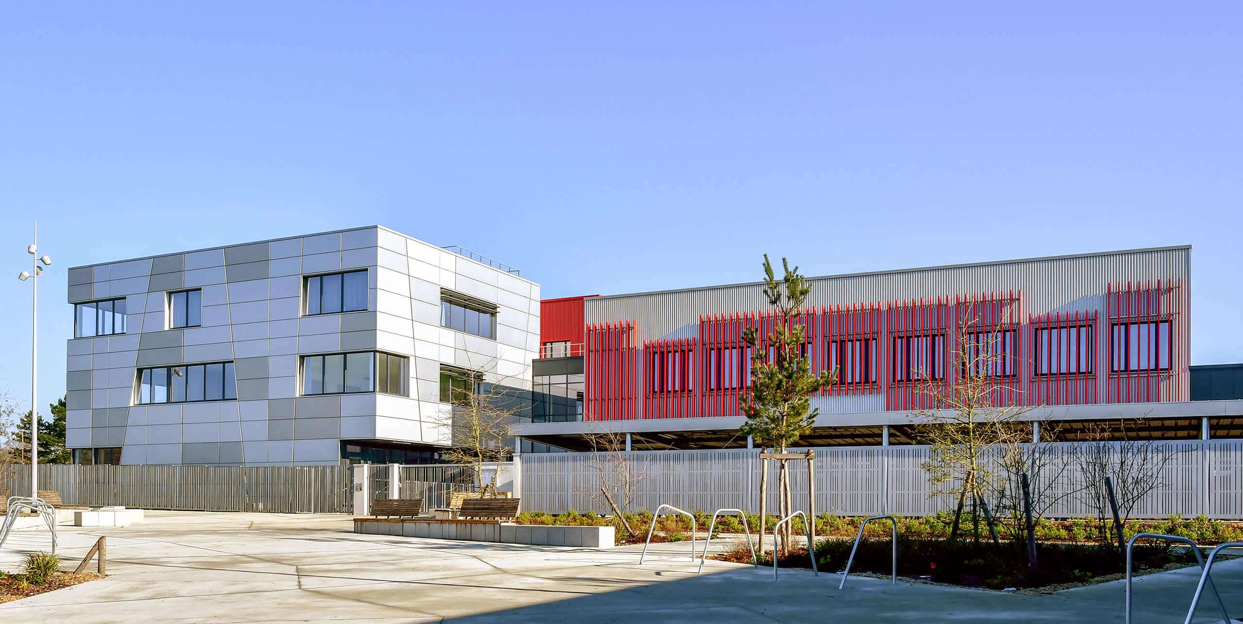 L’ordonnancement du collège repose sur le bâtiment d’enseignement en R+2 situé au centre du site, sur un axe est ouest qui constitue l’épine dorsale du collège, élément signal, qui fédère dans sa continuité les éléments fondamentaux du projet :