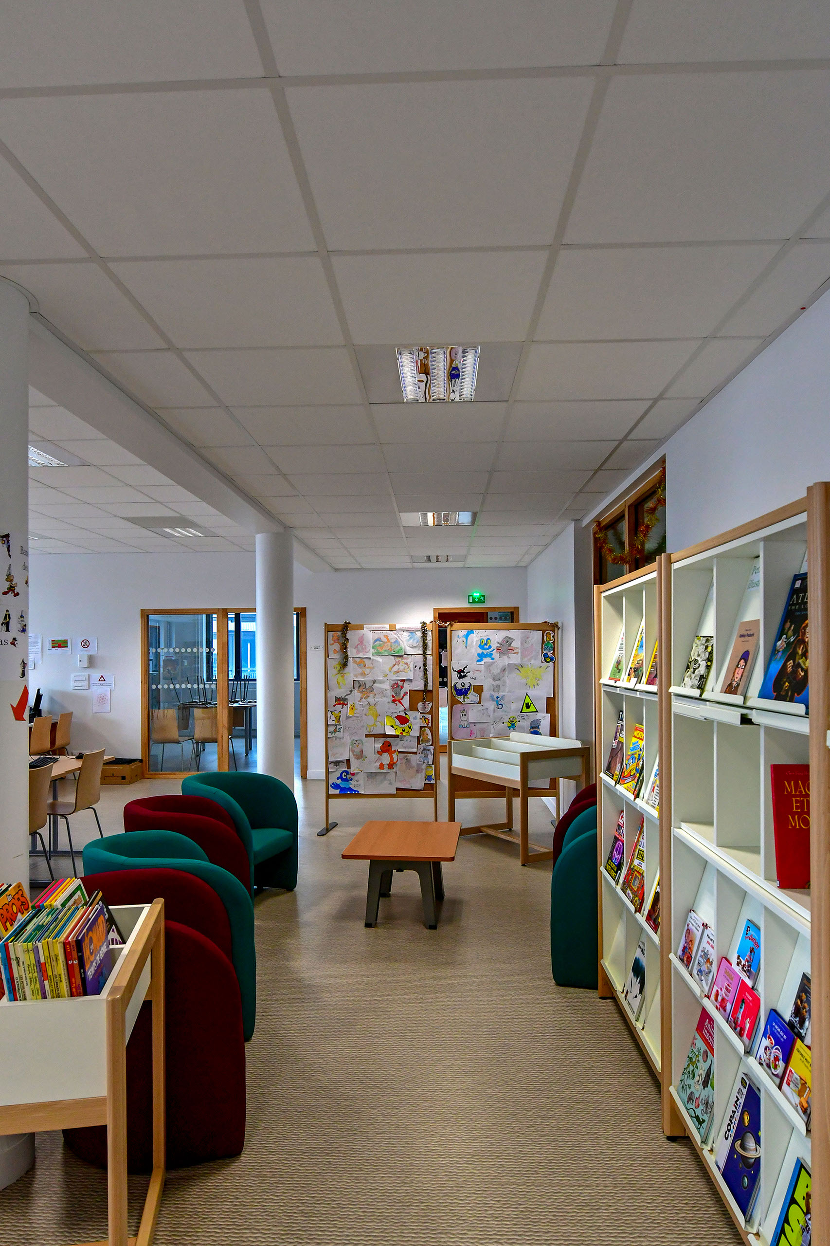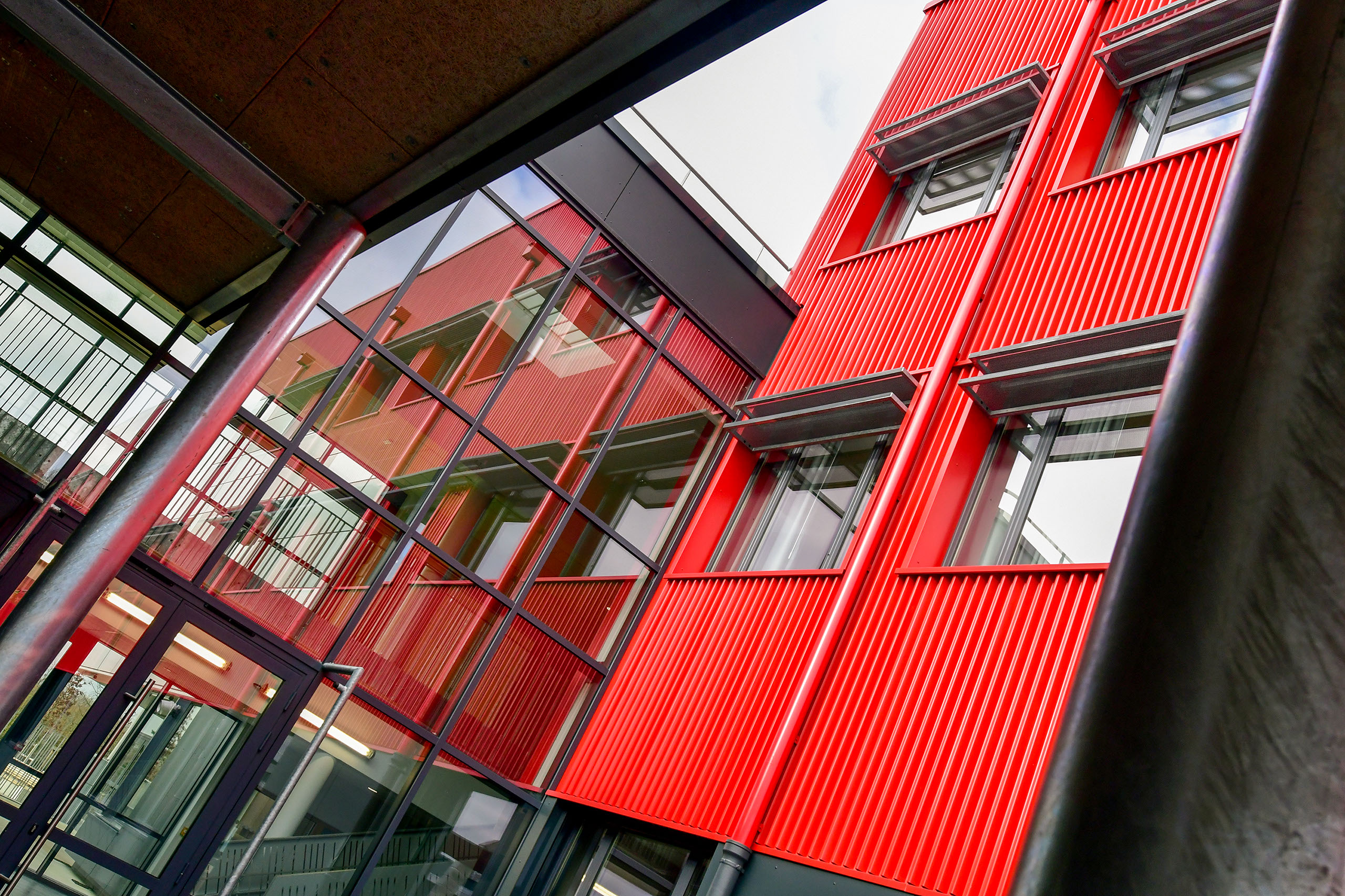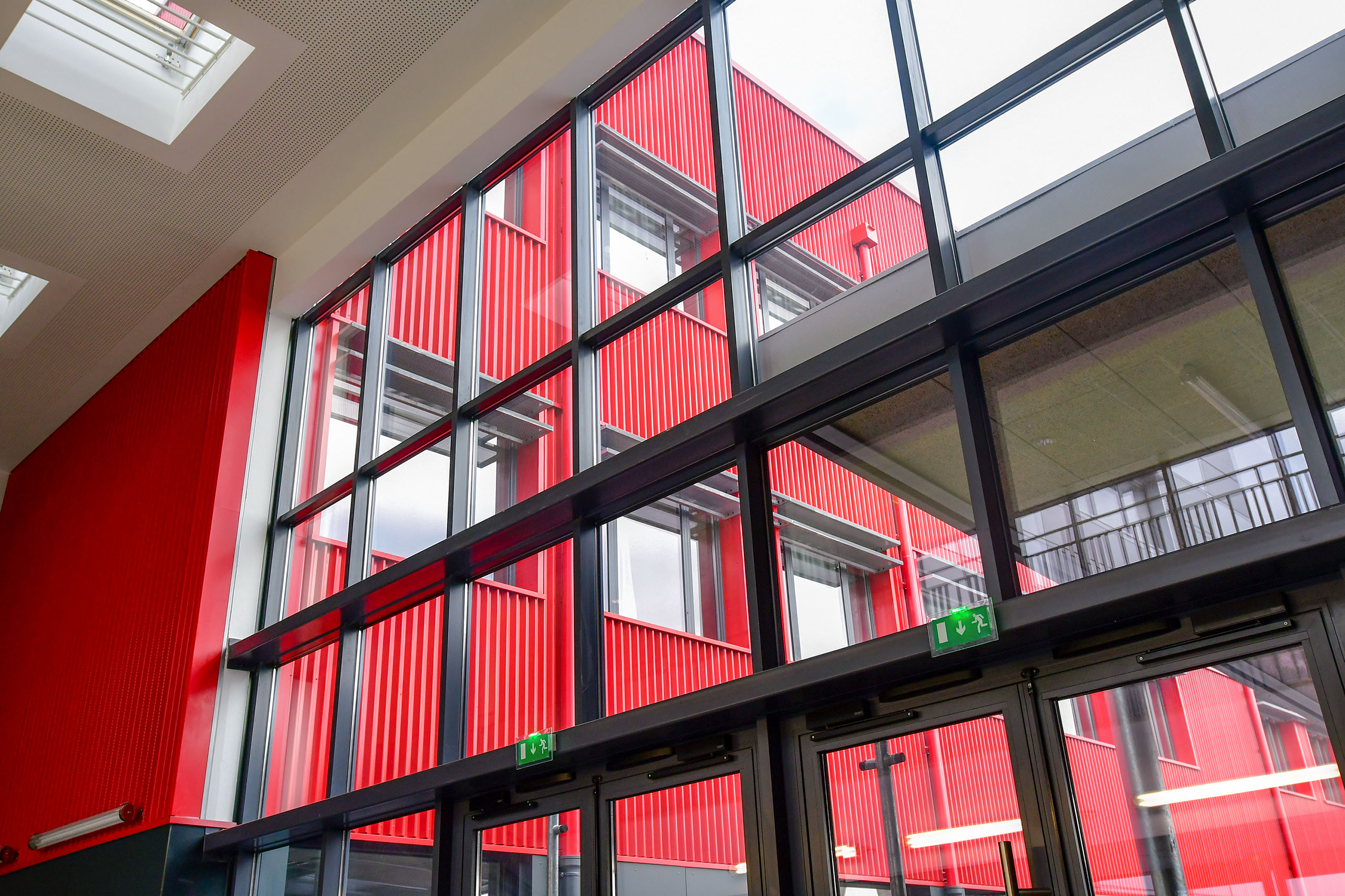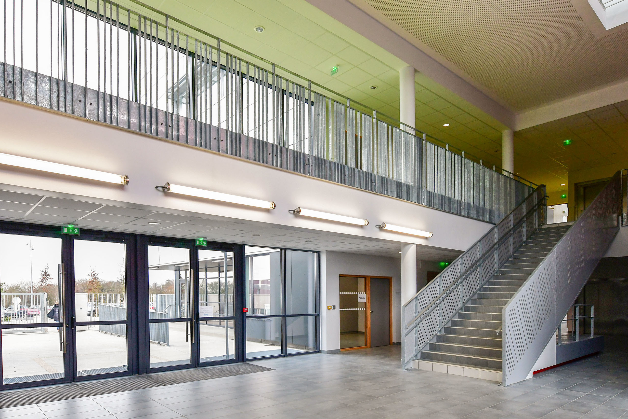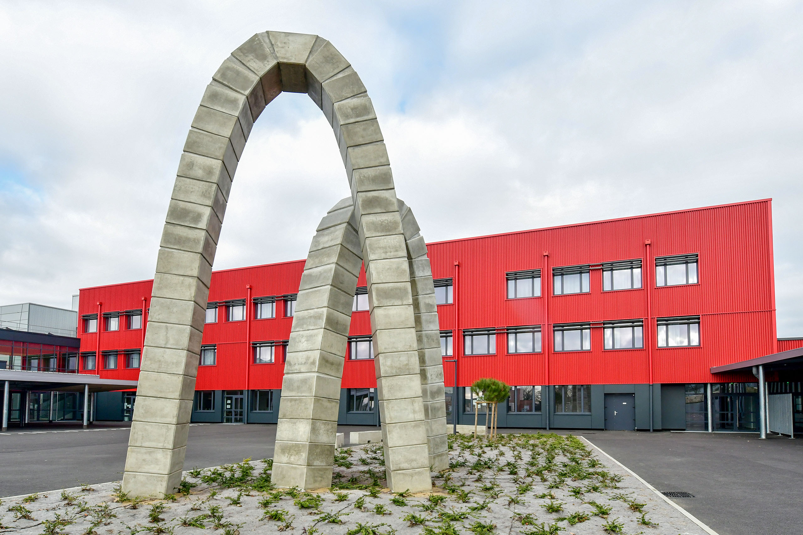 L’ordonnancement du collège repose sur le bâtiment d’enseignement en R+2 situé au centre du site, sur un axe est ouest qui constitue l’épine dorsale du collège, élément signal, qui fédère dans sa continuité les éléments fondamentaux du projet :