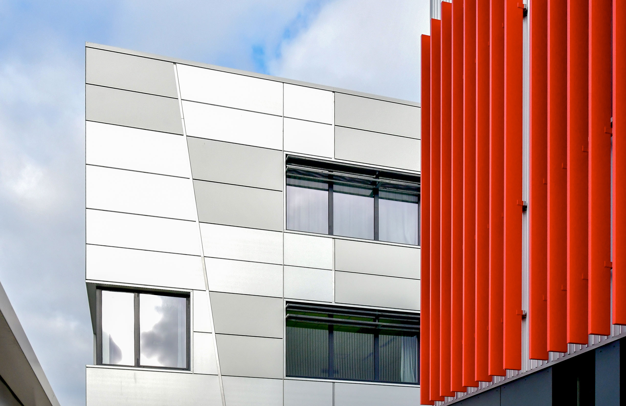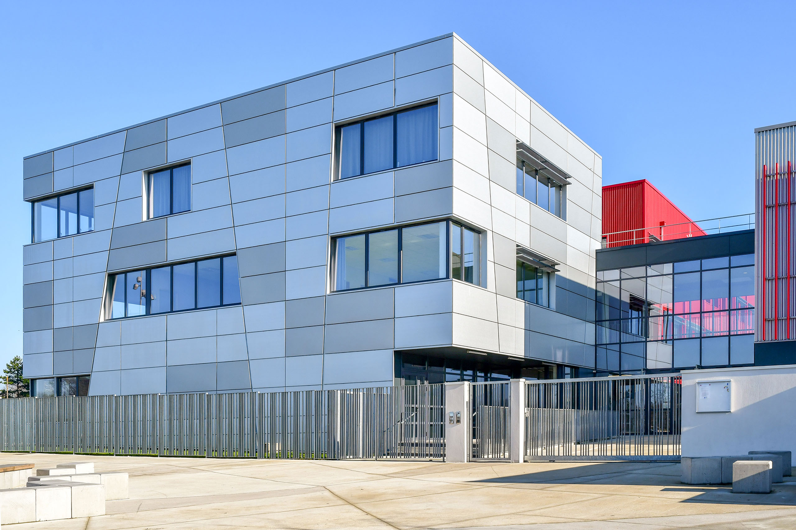 Afin d’optimiser le système constructif modulaire, la totalité des espaces scolaires sont regroupés dans ce seul volume permettant une rationalisation totale du procédé, constitué de modules « 3D » identiques, assemblés et superposés, aisément extensibles ou diminuables au-delà des scénarios proposés.