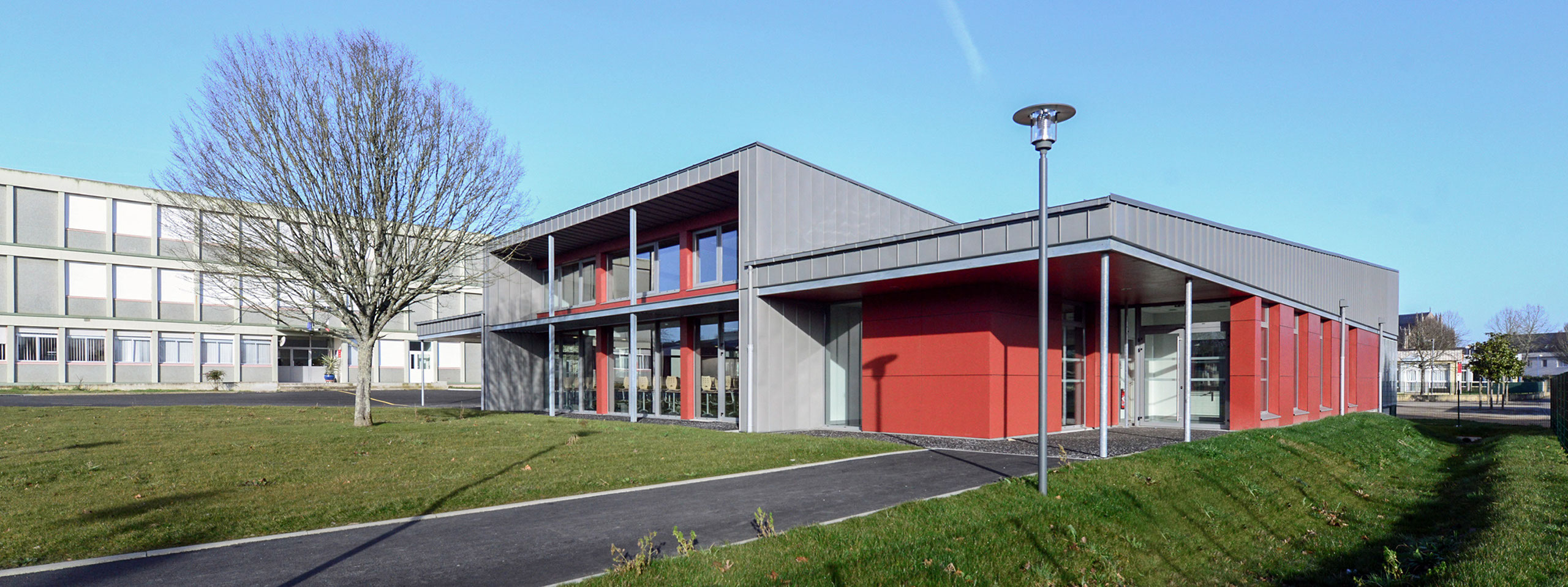 Le jeu des pentes inscrit harmonieusement le bâtiment dans son environnement.