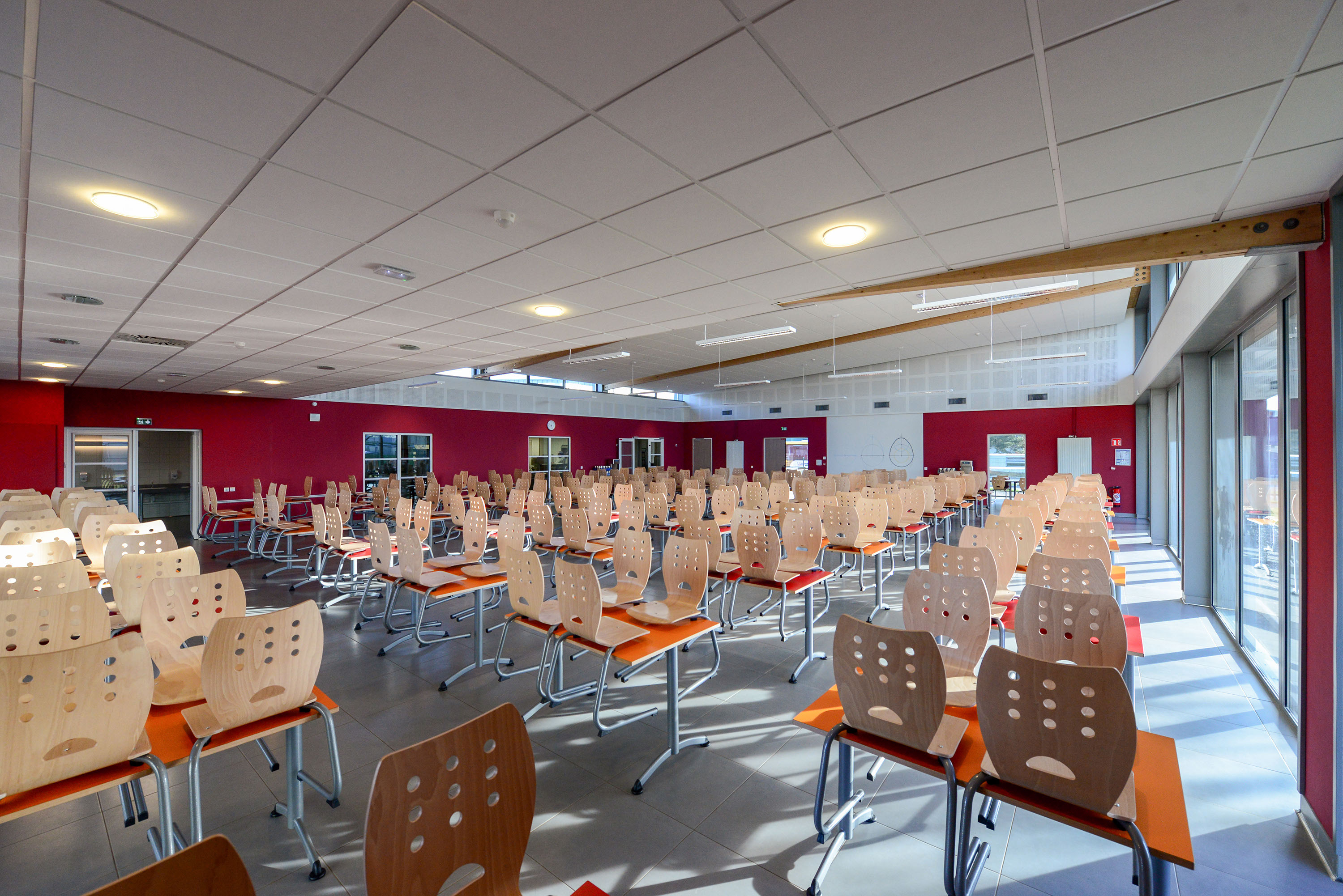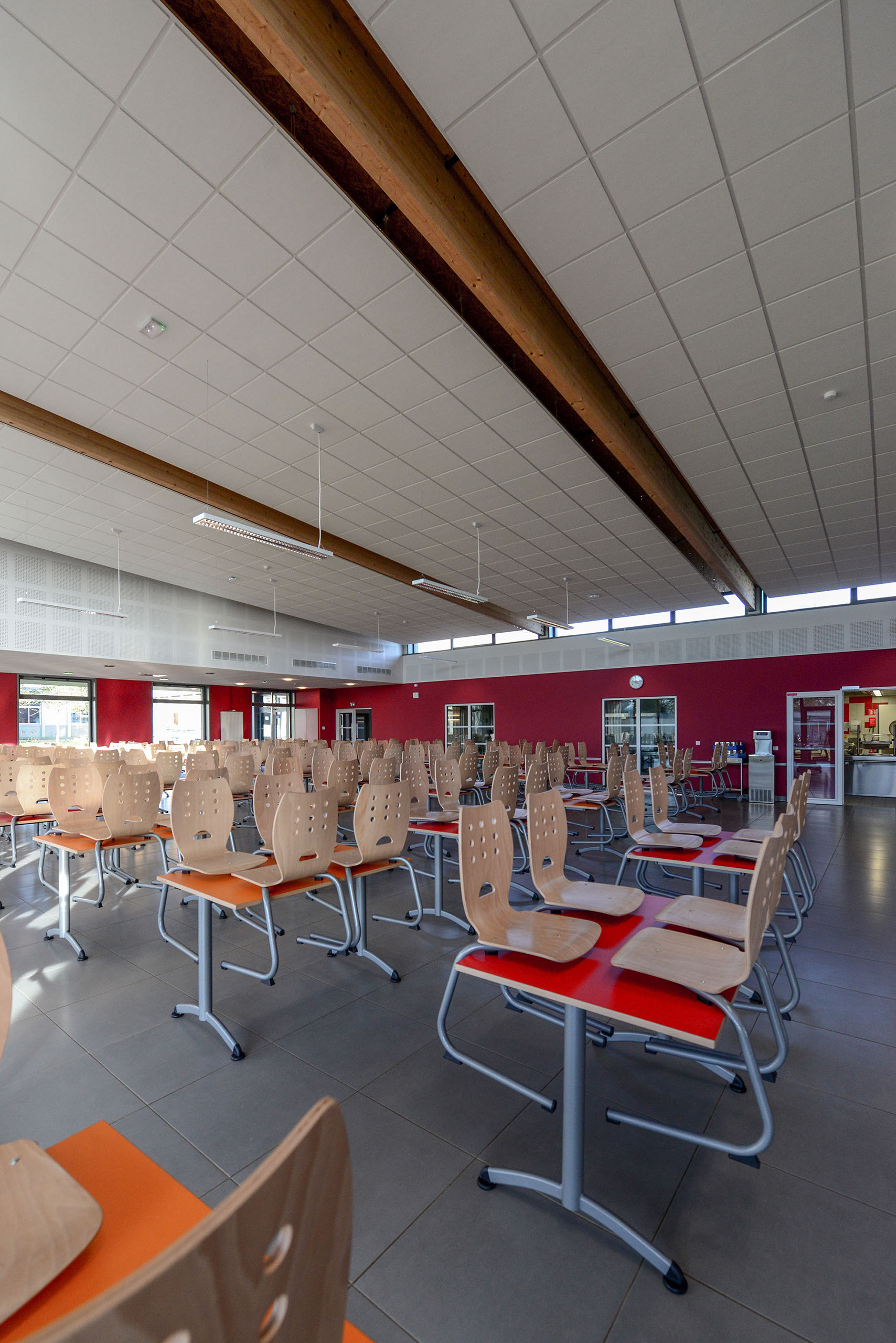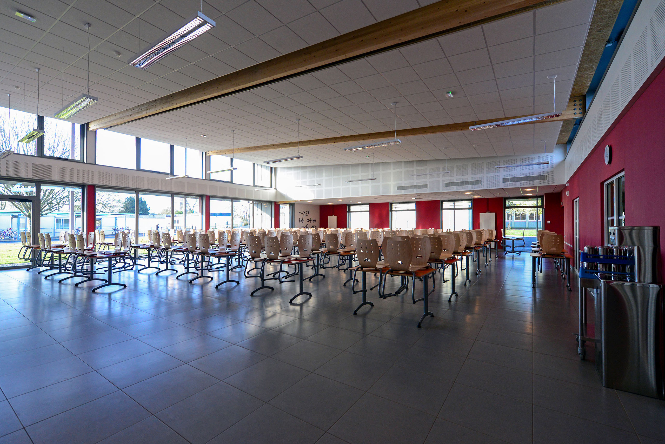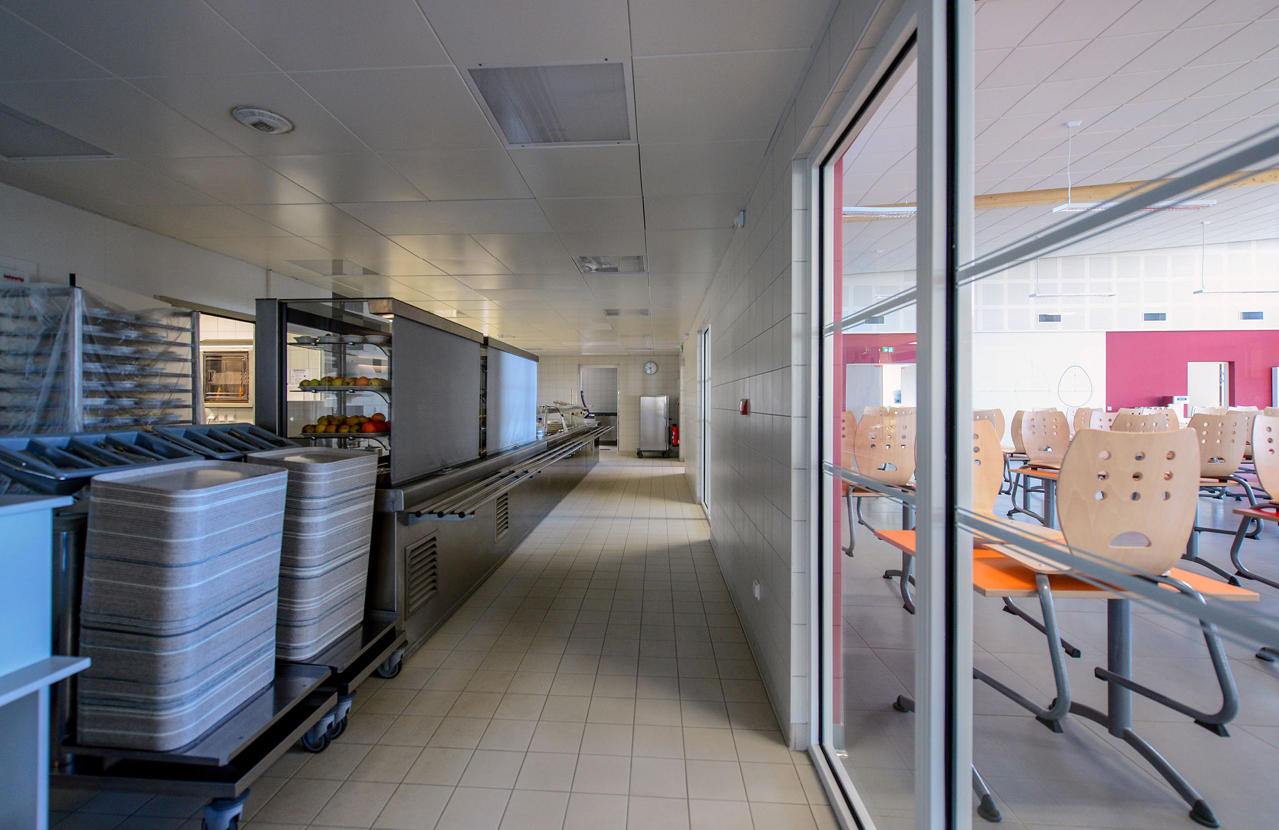 L’architecture est douce et rassurante, il s’agit donc d’un bâtiment simple, lumineux et fonctionnel où les enfants se sentiront à l’aise, pour y déjeuner dans le calme et dans l’apaisement d’un environnement protégé.