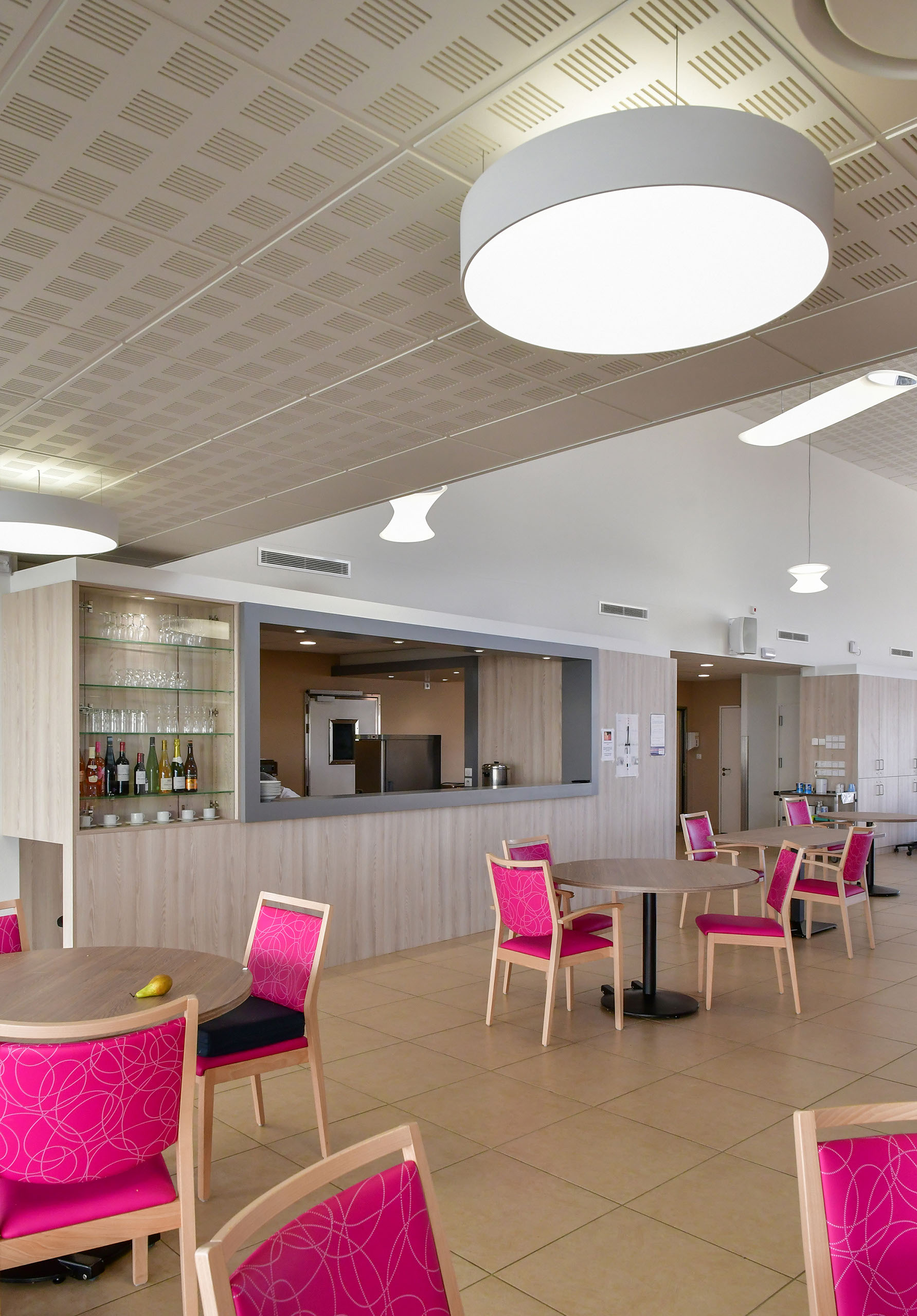 Le projet épouse au mieux le terrain et permet la création d’un rez-de-jardin semi-enterré accessible de plain-pied en partie nord et la partie sud permet l’accessibilité de la cuisine et de ses livraisons.