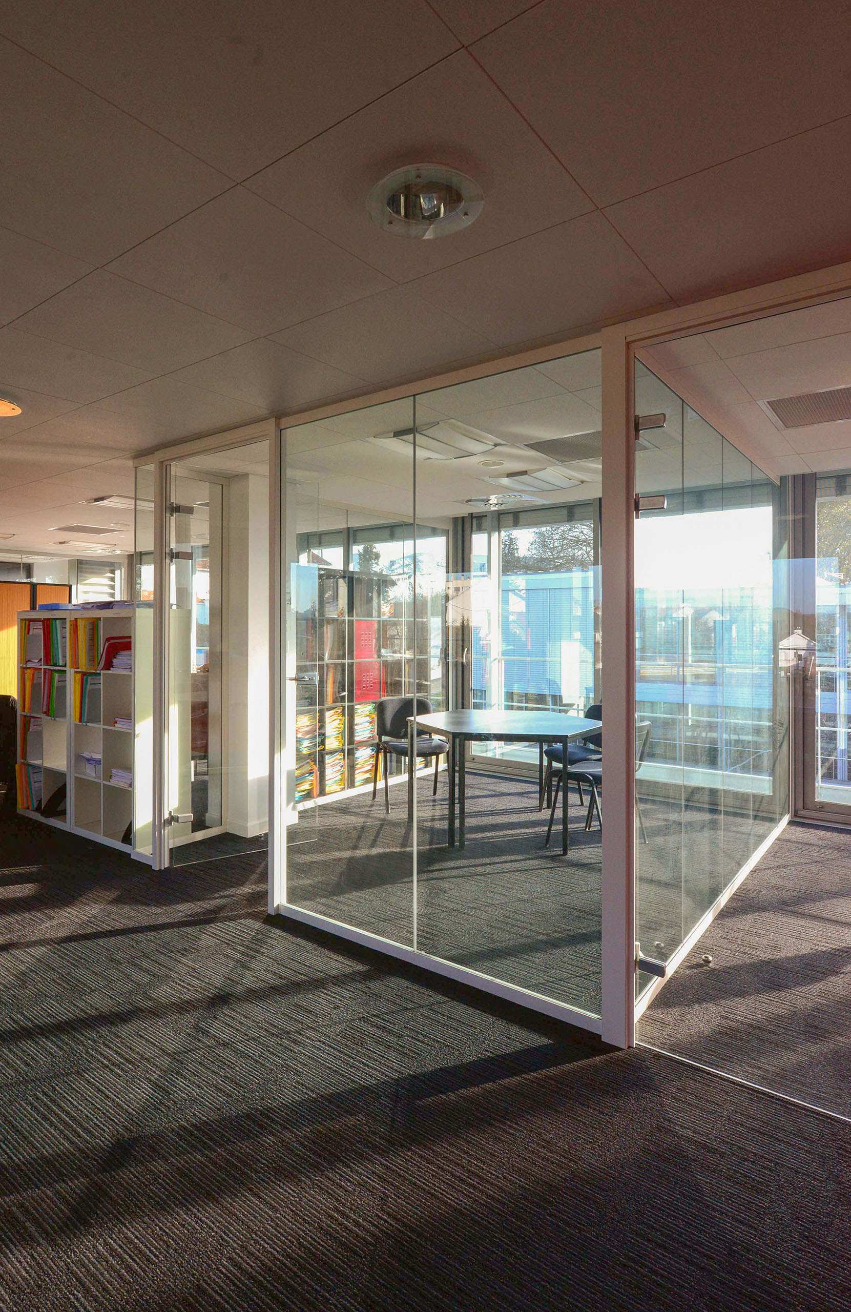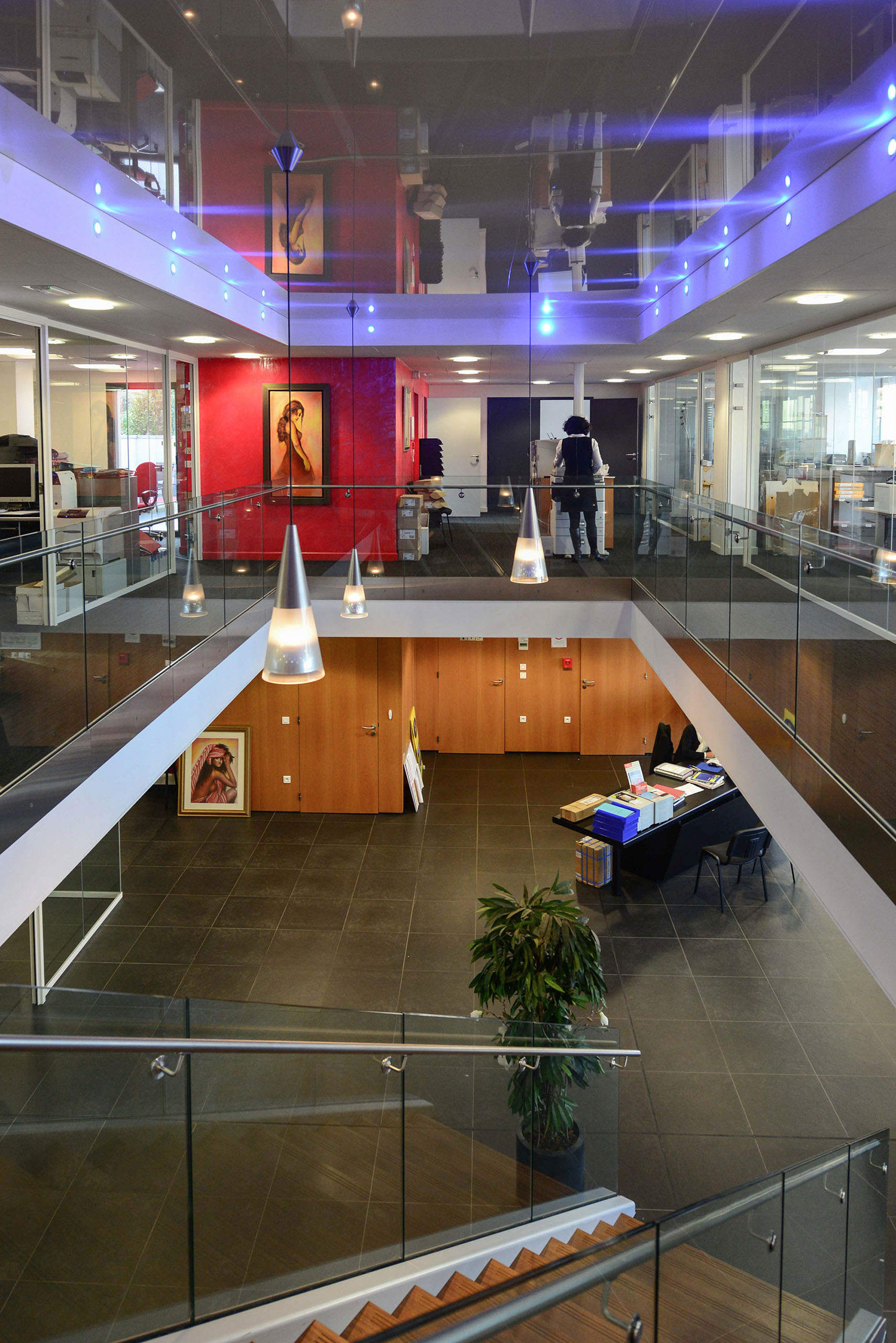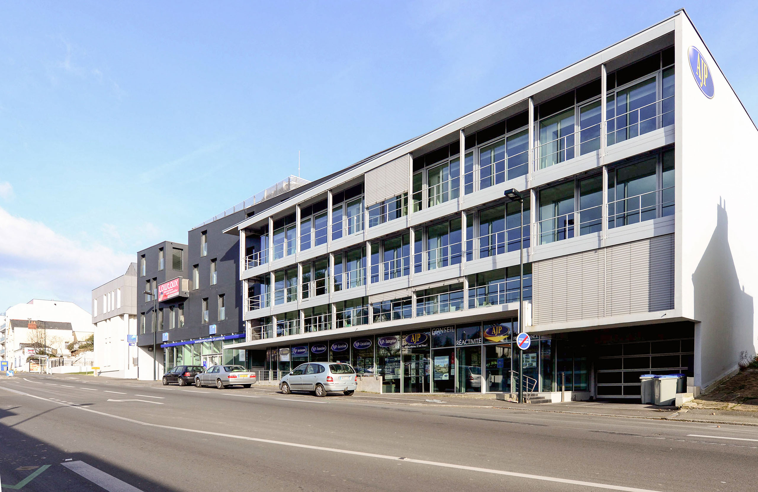 Le deuxième bâtiment situé en retrait est traité plus sobrement et tout en légèreté sous forme d’un grand volume totalement transparent.