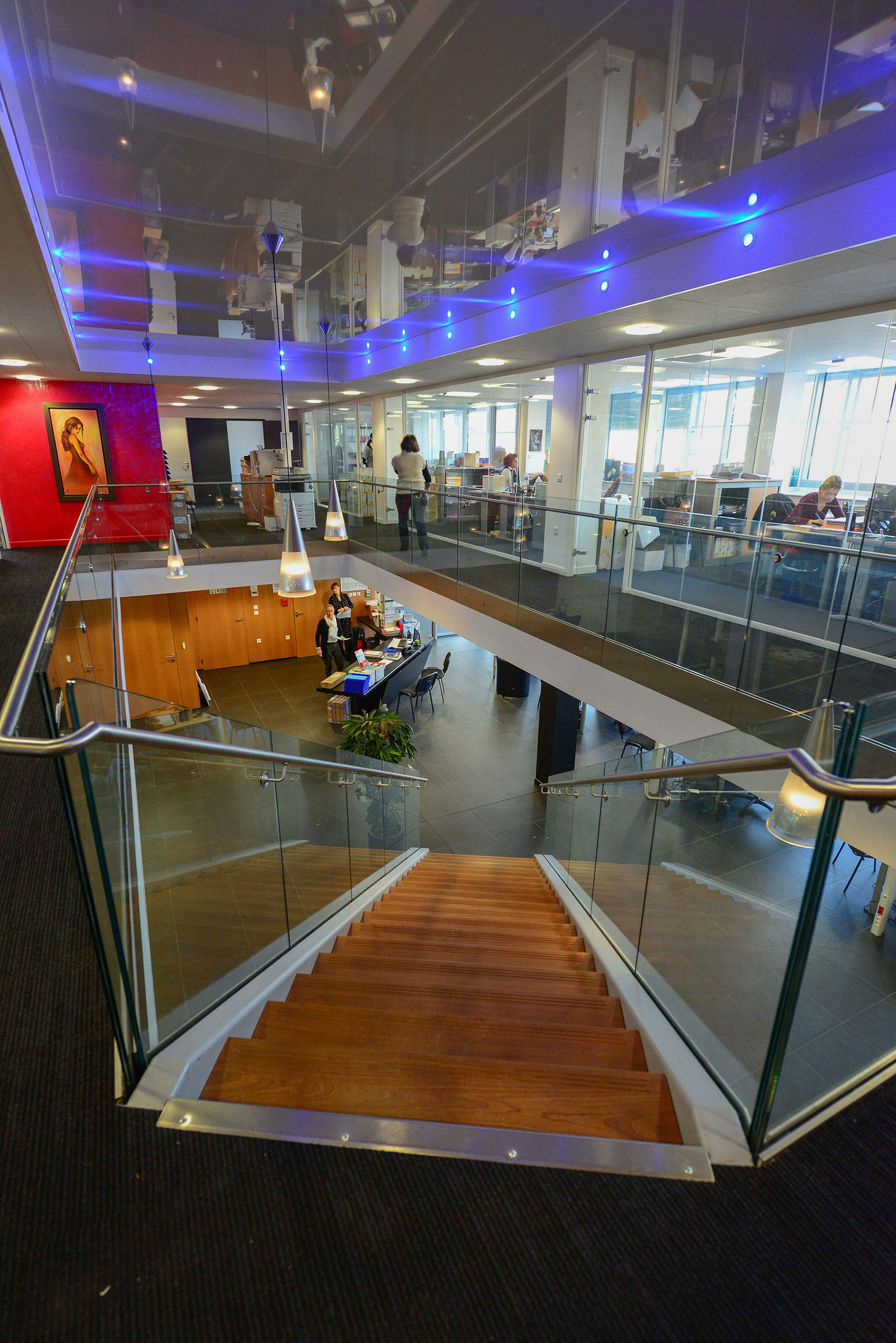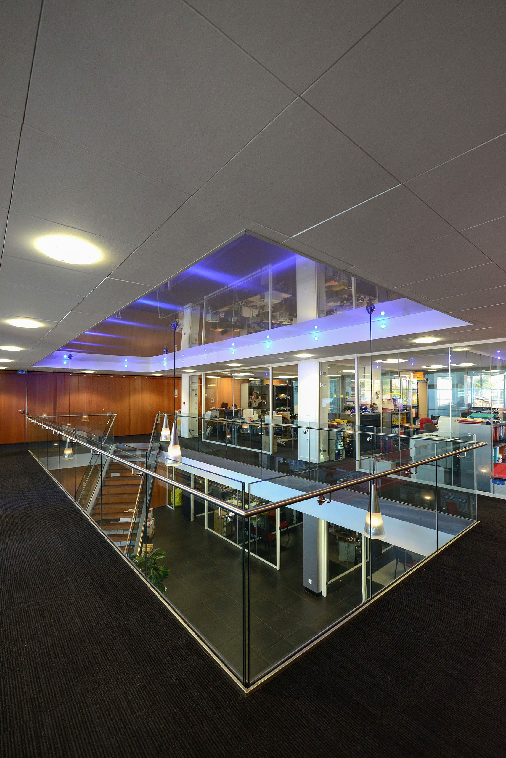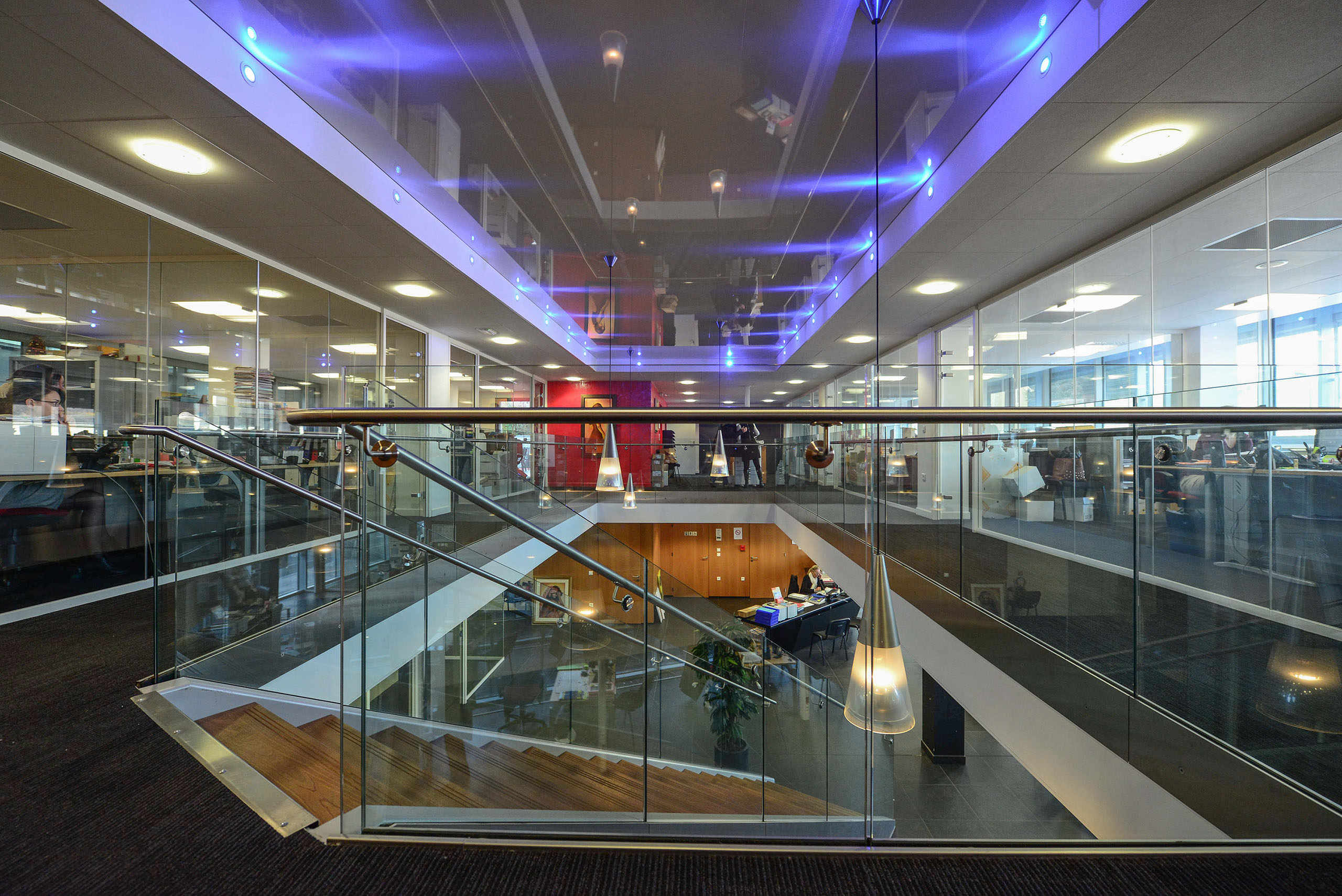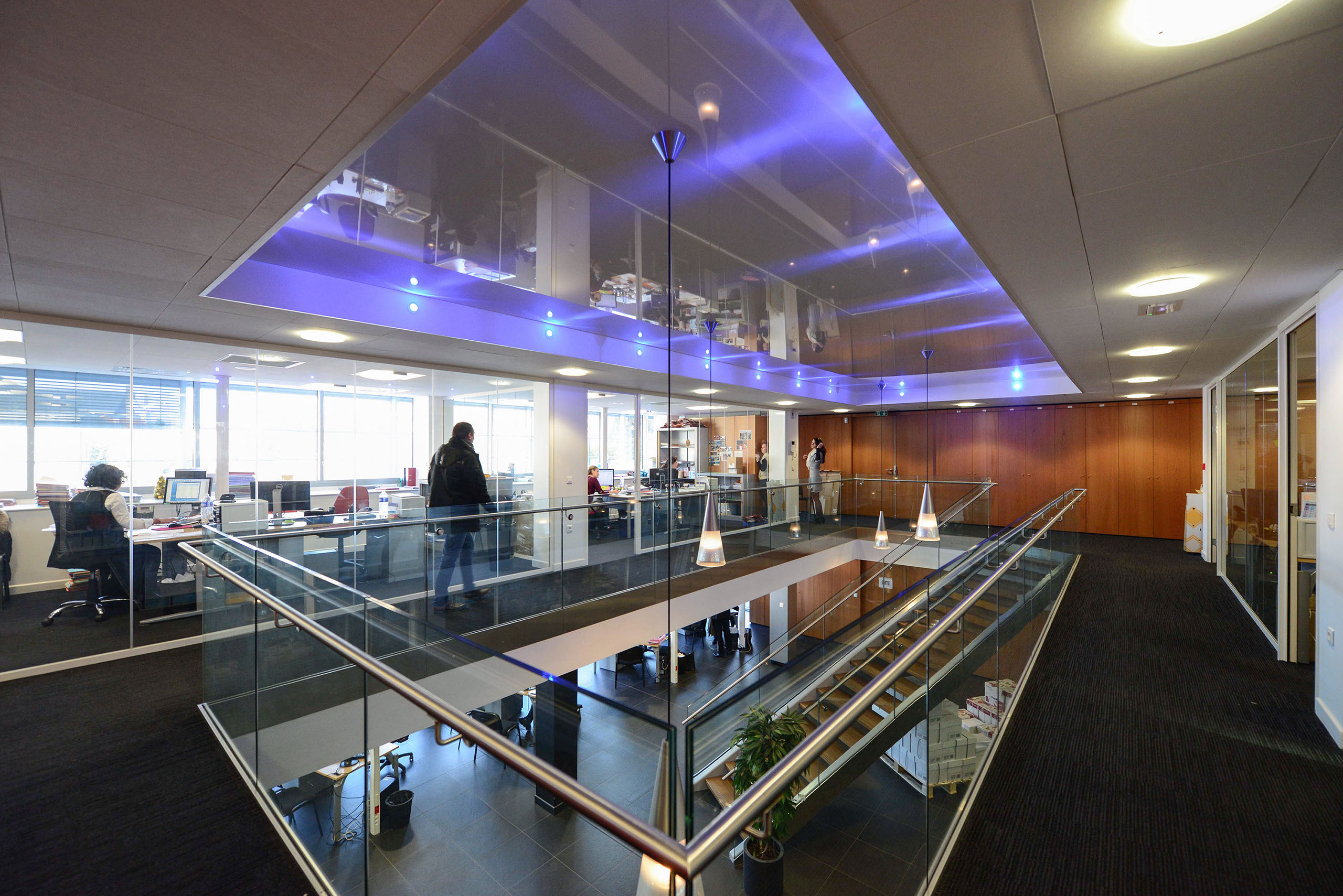 Le deuxième bâtiment situé en retrait est traité plus sobrement et tout en légèreté sous forme d’un grand volume totalement transparent.