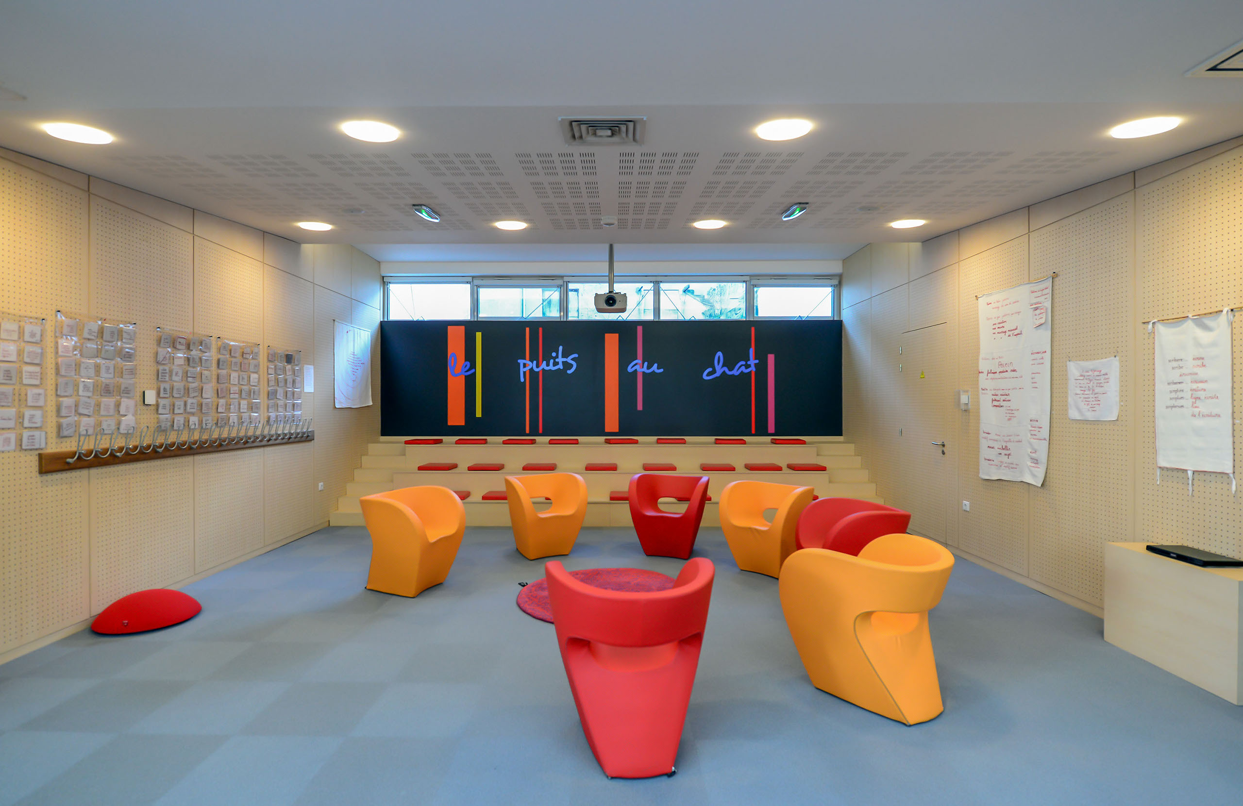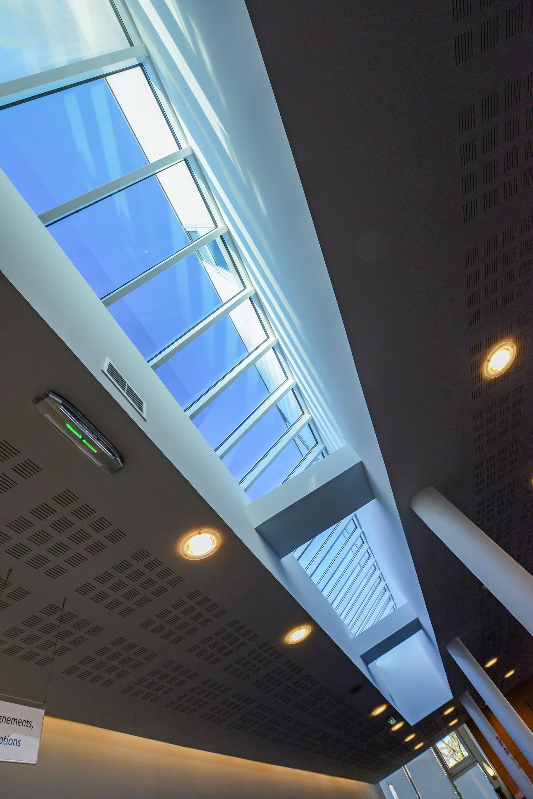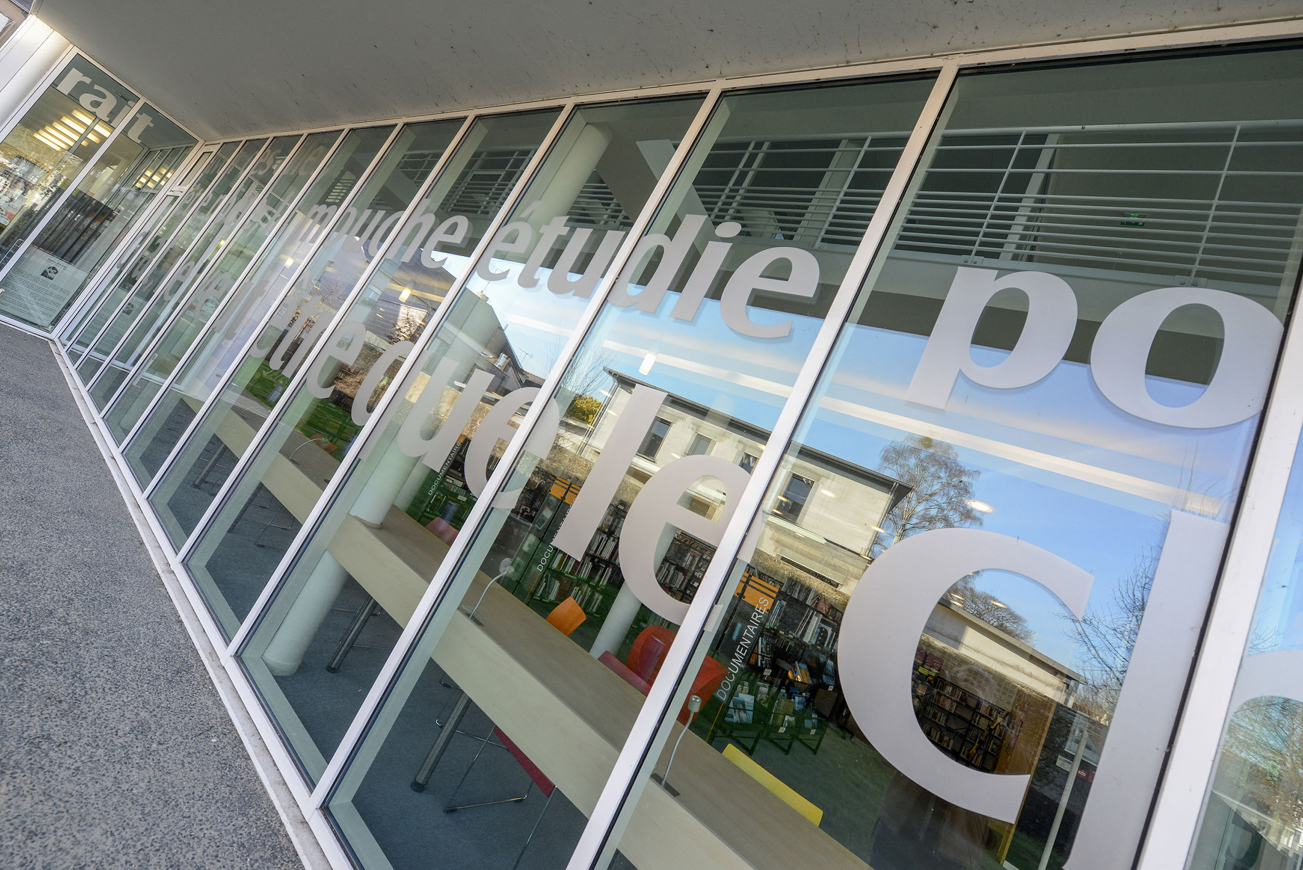 L’ensemble est traité en volumes simples et structuré de percements rythmés, très amples en RDC et comme des meurtrières à l’étage.