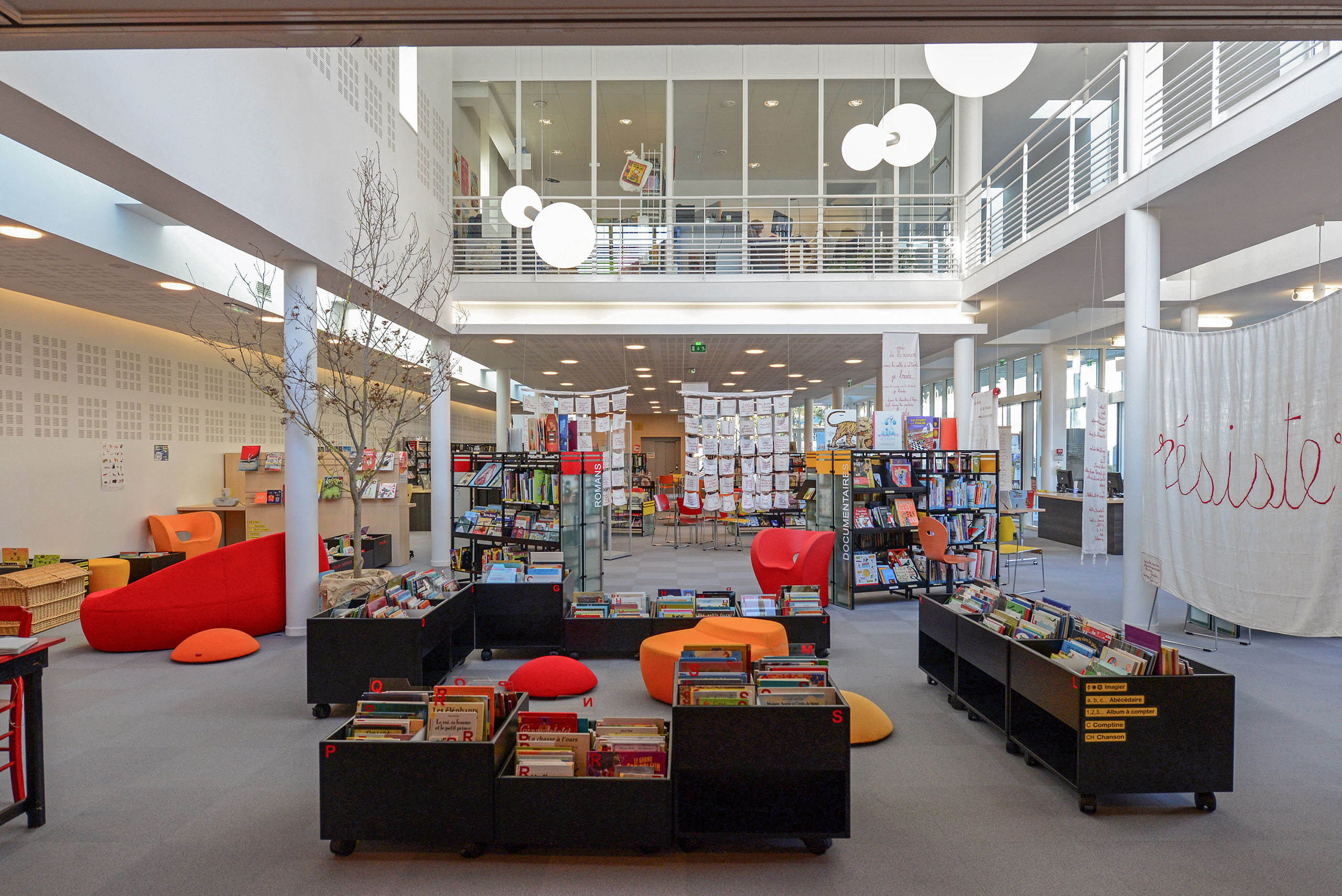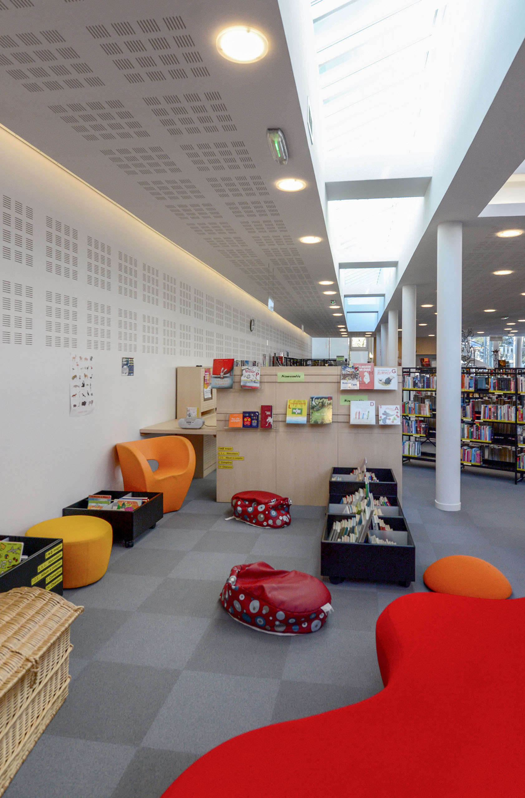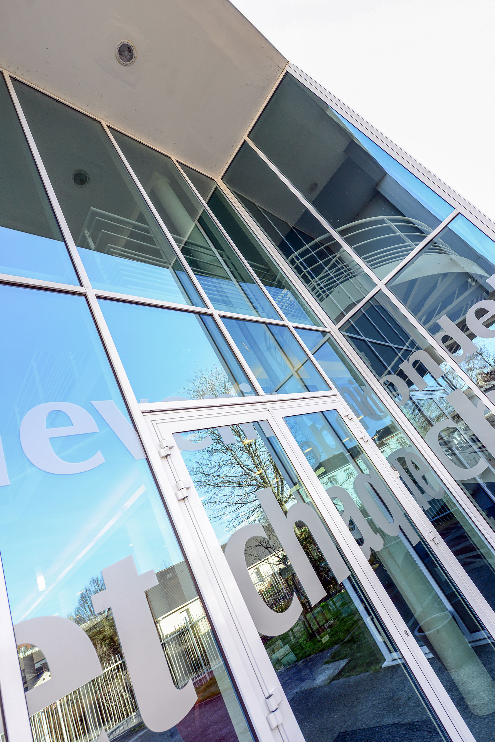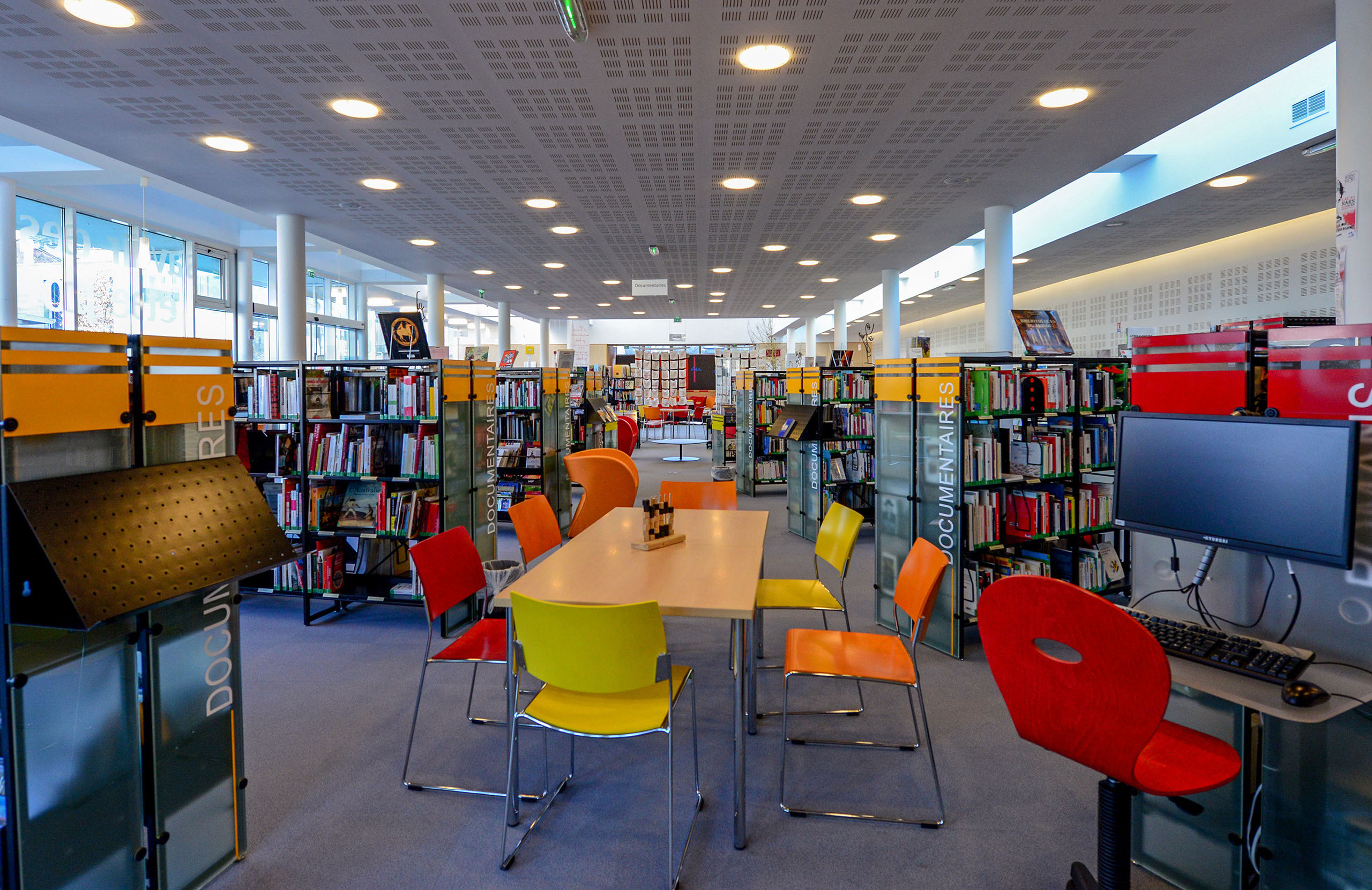 L’ensemble est traité en volumes simples et structuré de percements rythmés, très amples en RDC et comme des meurtrières à l’étage.