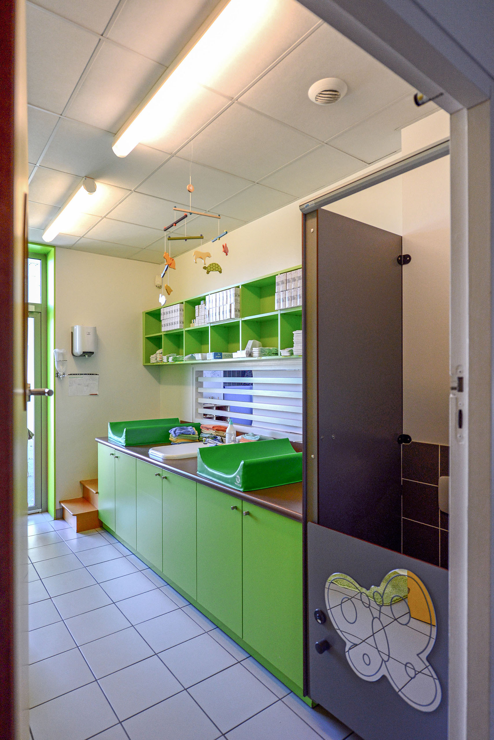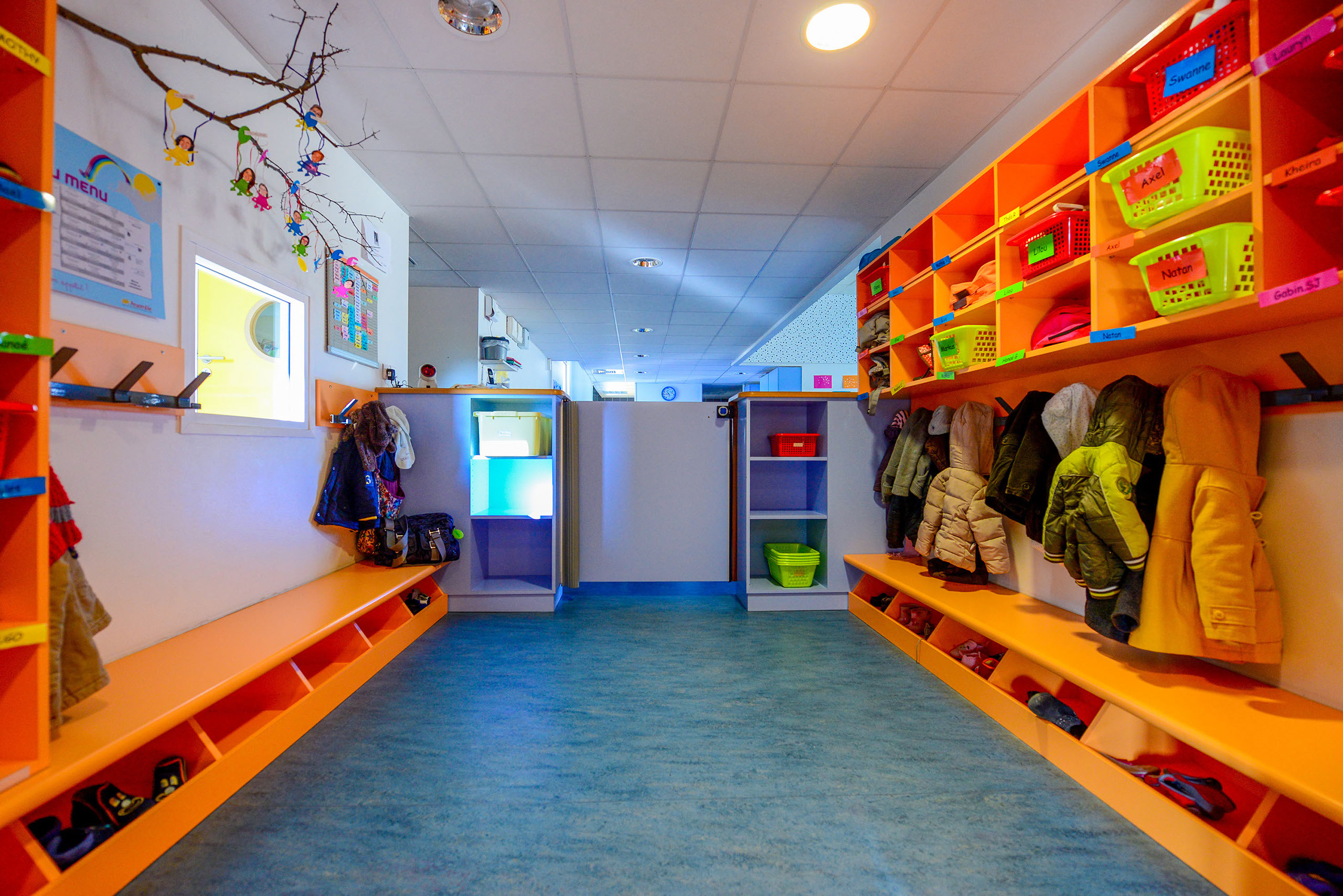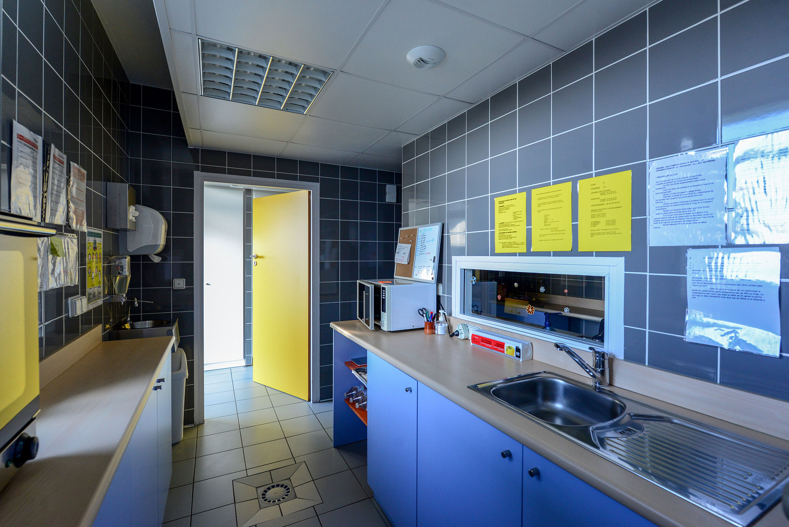 Des volumes hauts ressortent et émergent au-dessus de ces parois pour indiquer les espaces d’activités plus importants et assurer la verticalité.