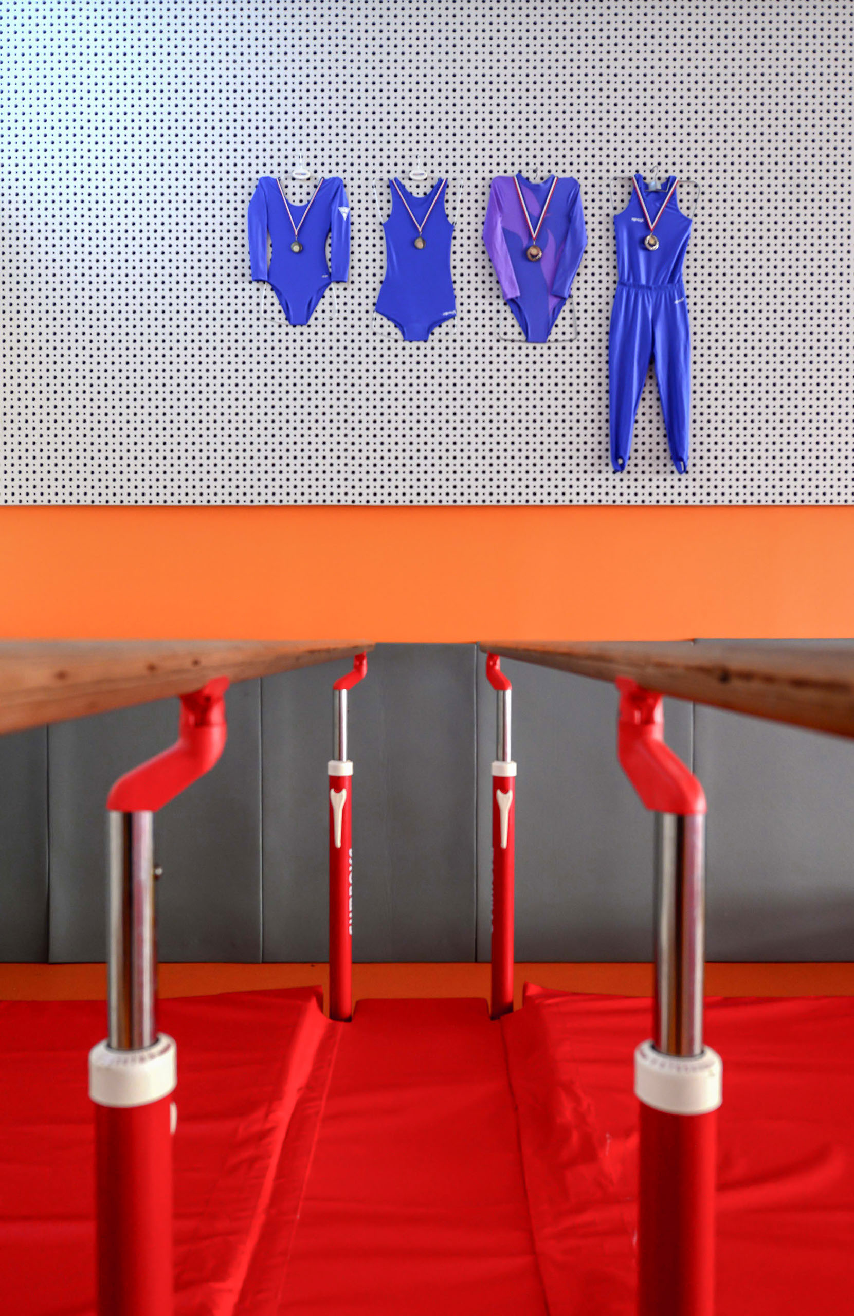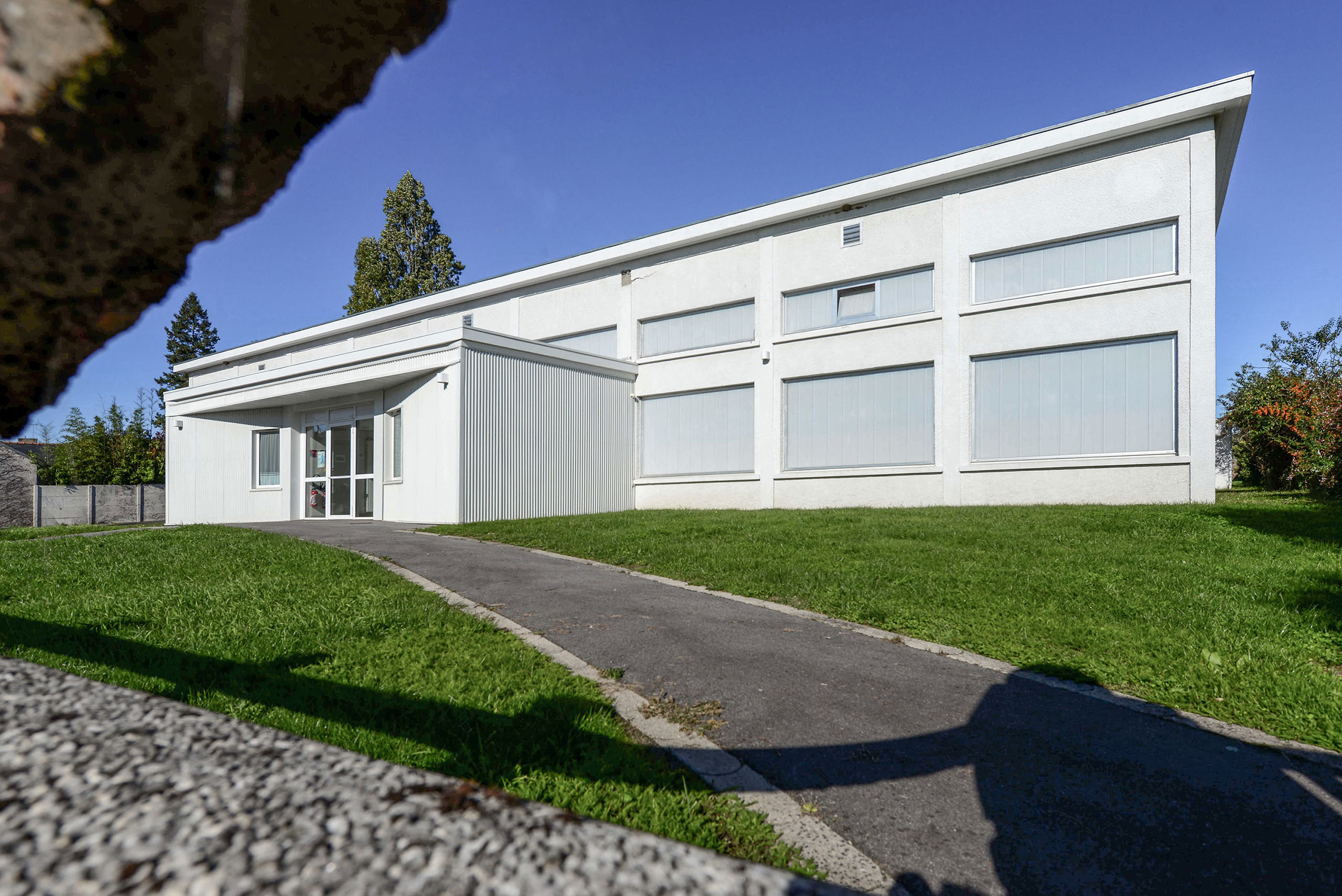 Le volume principal est un parallélépipède rectangle, composé d’une partie basse en bardage métallique et d’une partie haute en bardage polycarbonate alvéolaire, apportant une lumière naturelle tamisée.