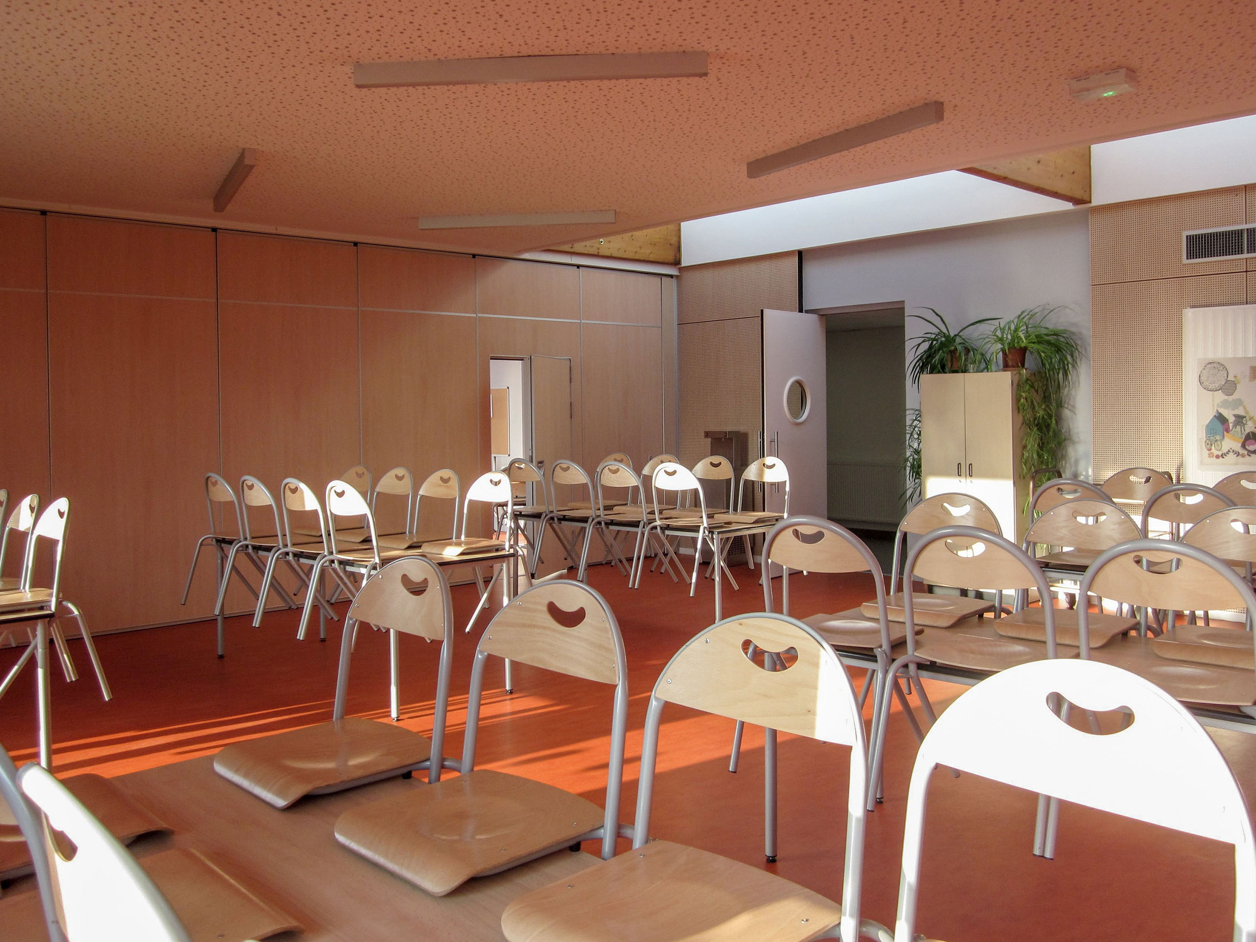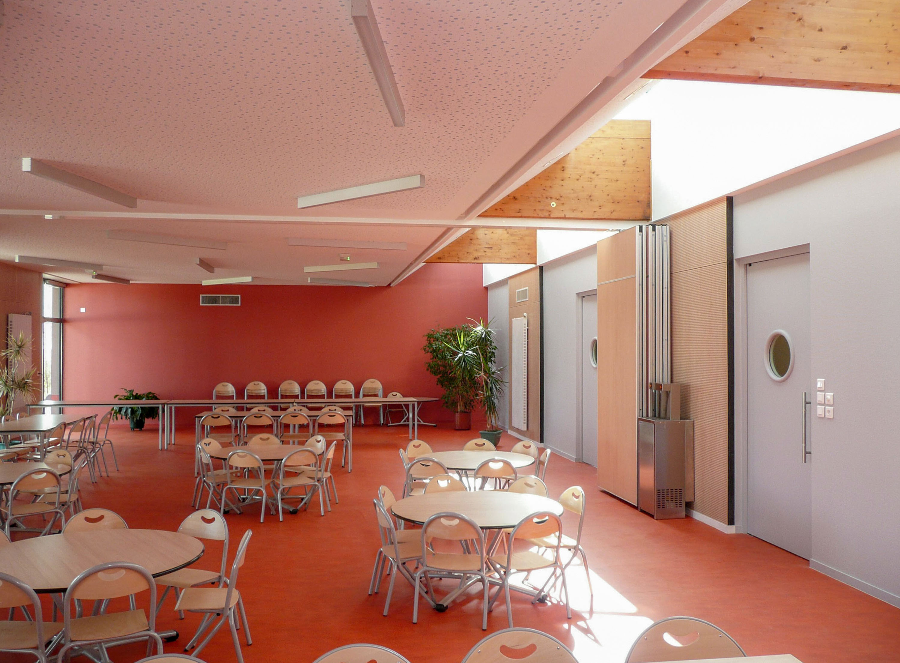 La paroi entre la salle d’activités et la salle de restaurant sera modulable pour permettre d’amplifier les activités en périodes de vacances scolaires tout en conservant une salle de restaurant plus petite qui servira pendant ces mêmes périodes.