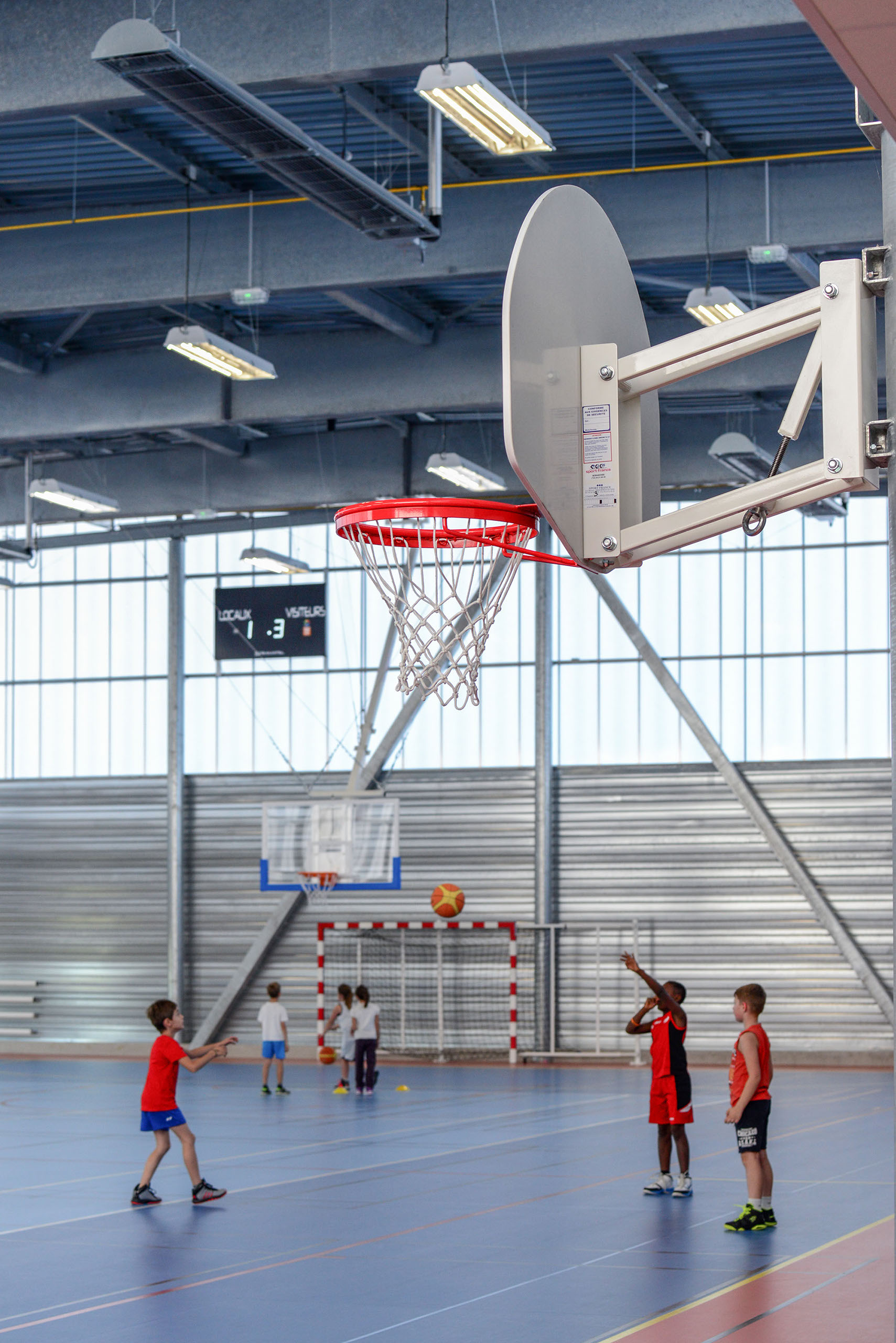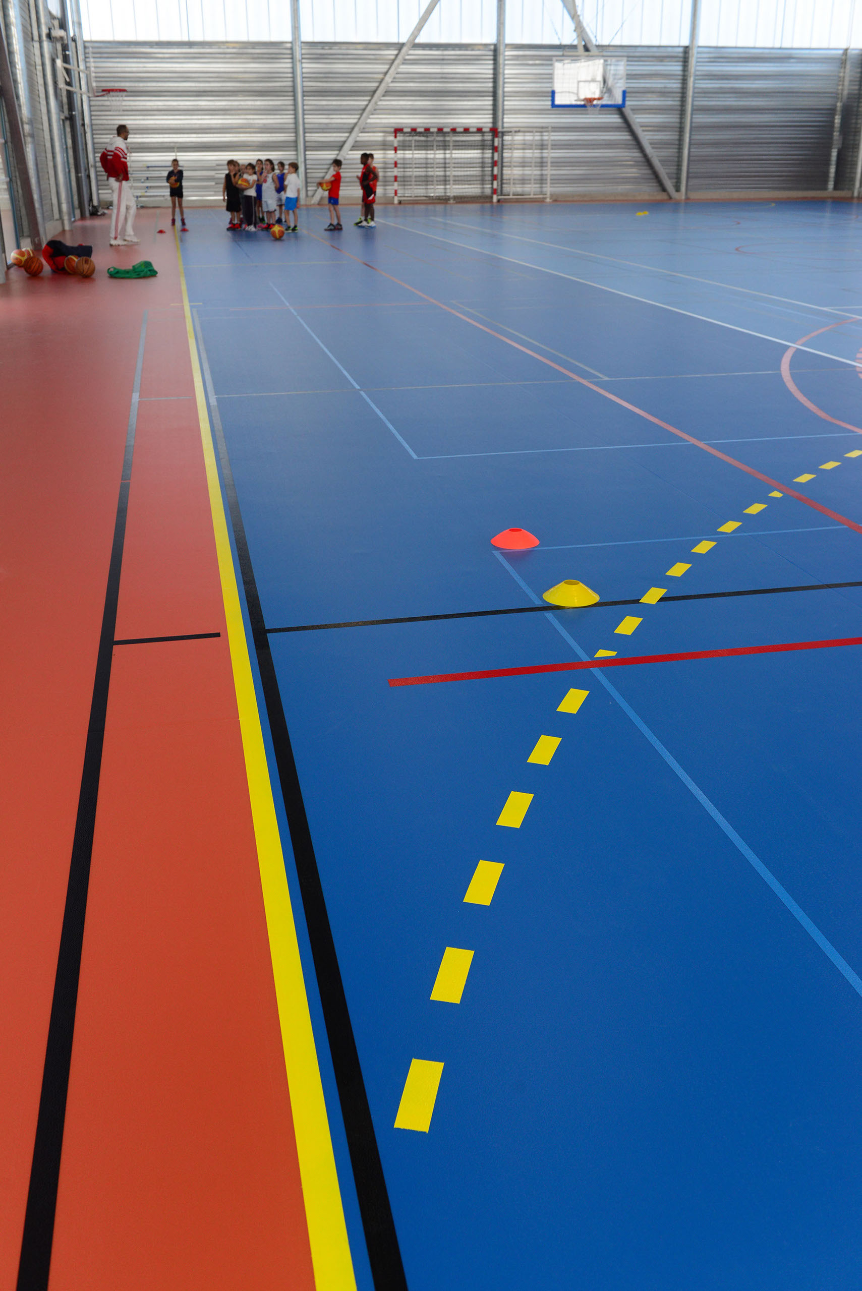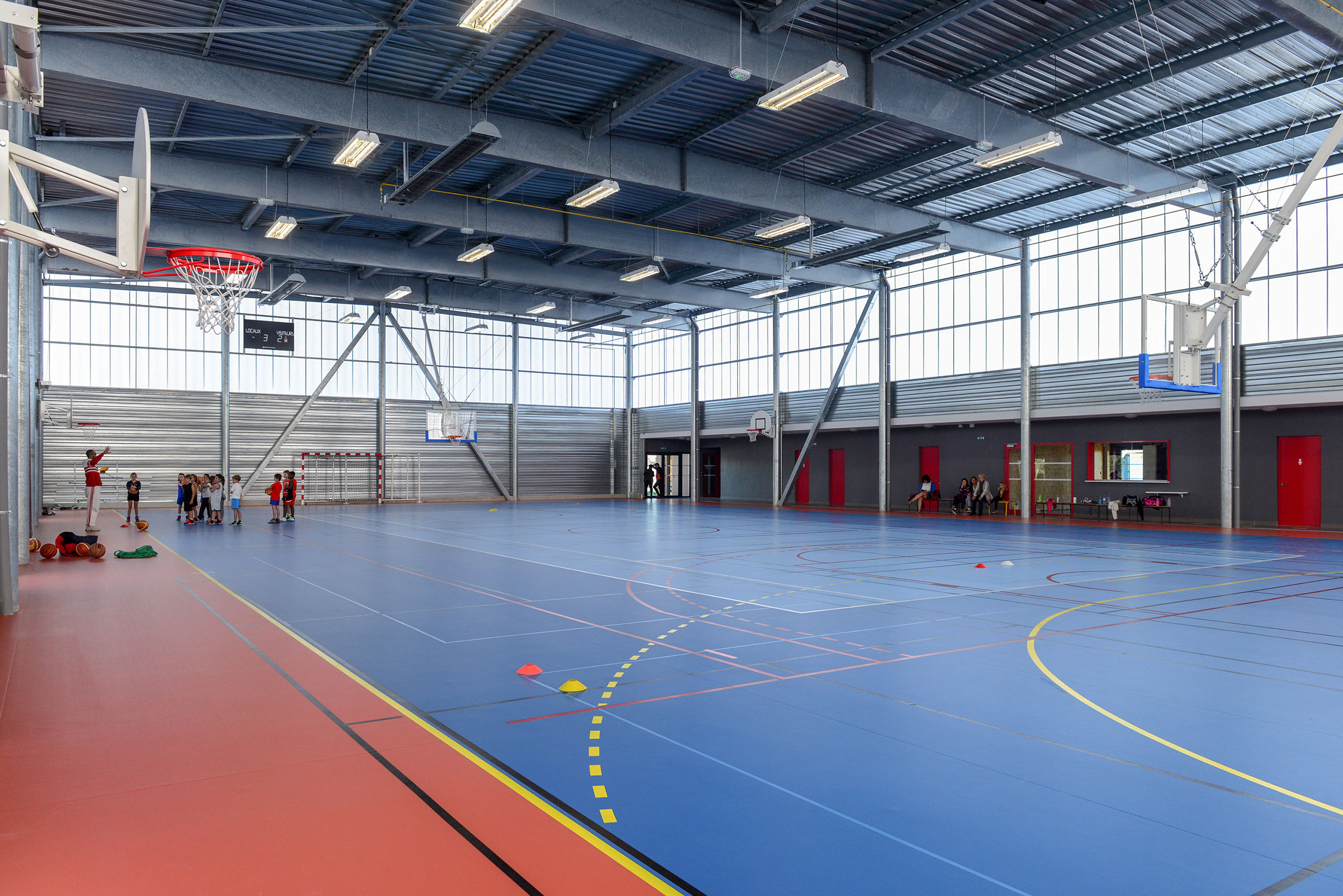 Le bâtiment, à simple rez-de-chaussée est constitué d’un volume principal, abritant la salle proprement dite, flanquée sur sa longueur d’un volume plus bas qui abrite les vestiaires.