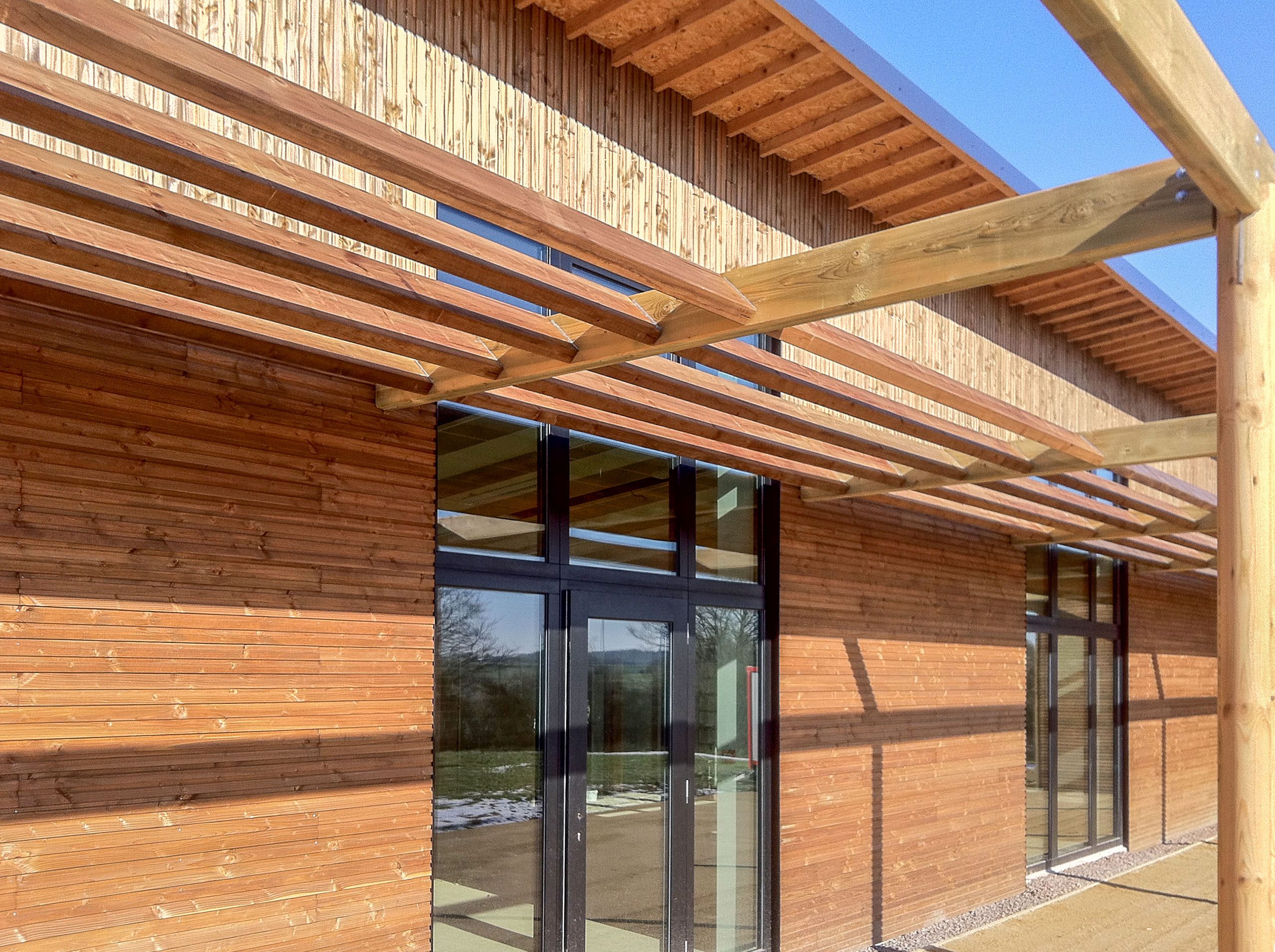 • Intégration paysagère et bio-diversité : la salle respecte la volumétrie des bâtisses voisines – le bois et les enduits s’intègrent bien au sein des maisons de pierre existantes – les haies locales sont conservées et renforcées.