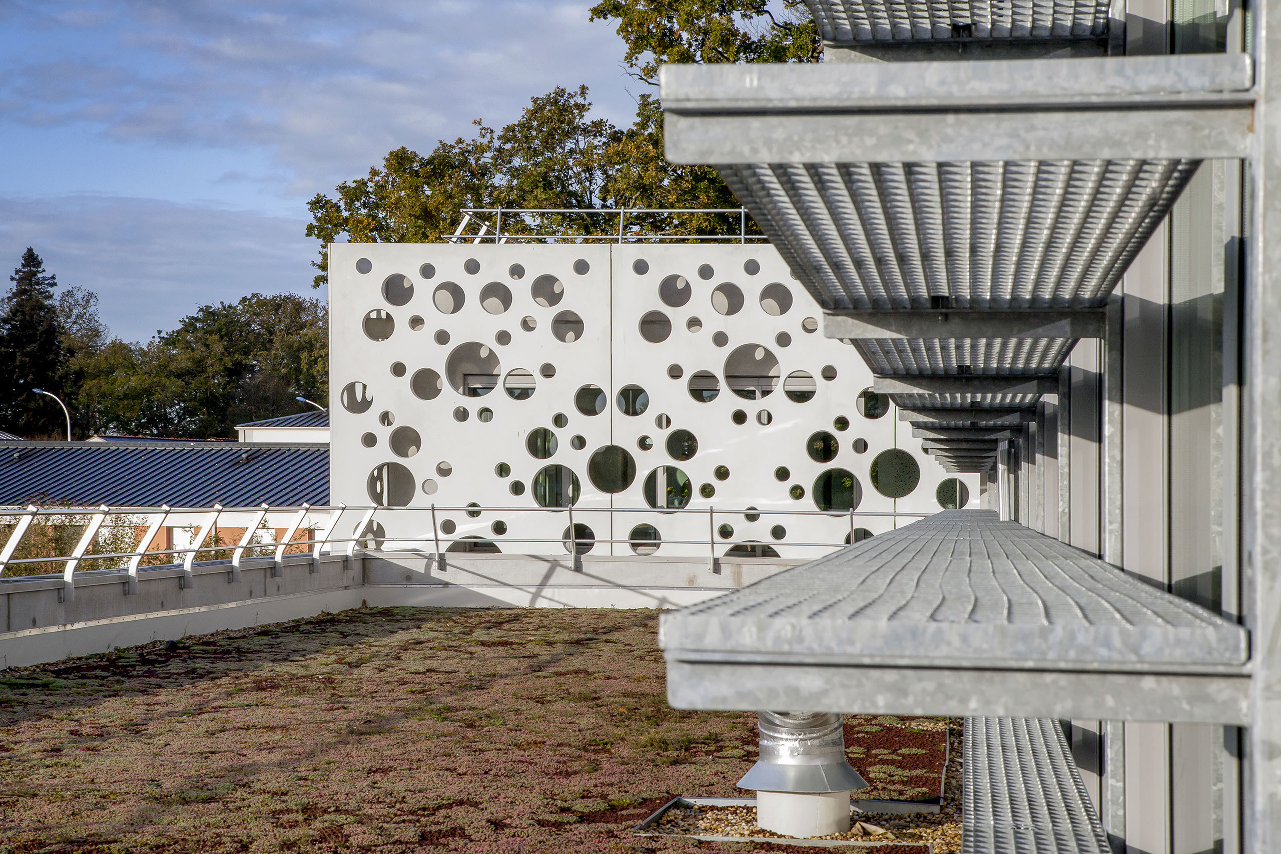 Une longue réflexion a été menée sur la qualité environnementale et a permis d’aboutir sur une solution performante à 70% supérieure à l’exigence RT 2005 faisant peu appel aux centrales d’air consommatrices d’énergie et de maintenance.