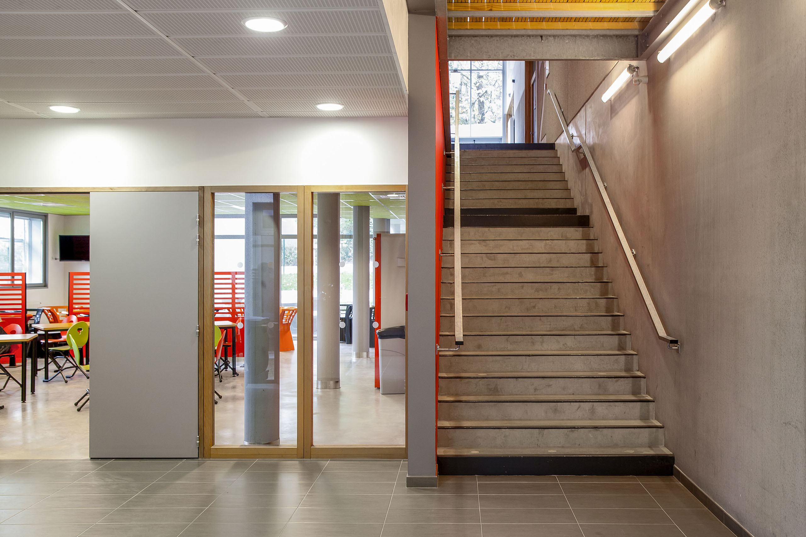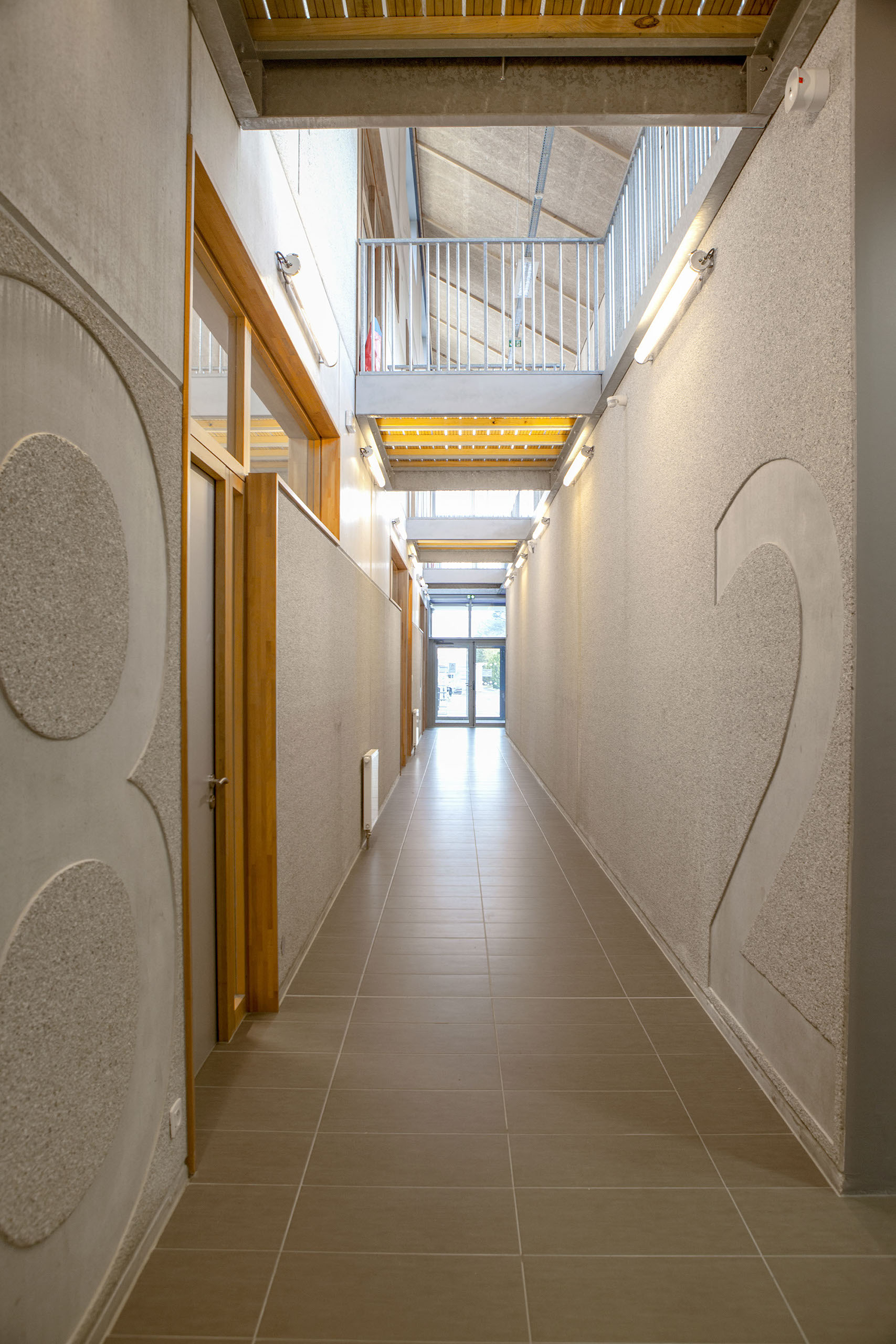 L’ensemble est traité en volumes sobres fonctionnels sans ostentation, ce sont, avant tout, des lieux de travail.