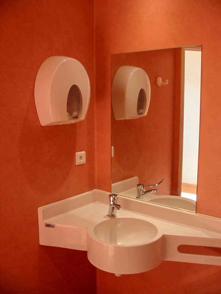 Un soubassement à redans définit le volume de base sur lequel viennent se poser deux ailes comportant chacune deux niveaux.