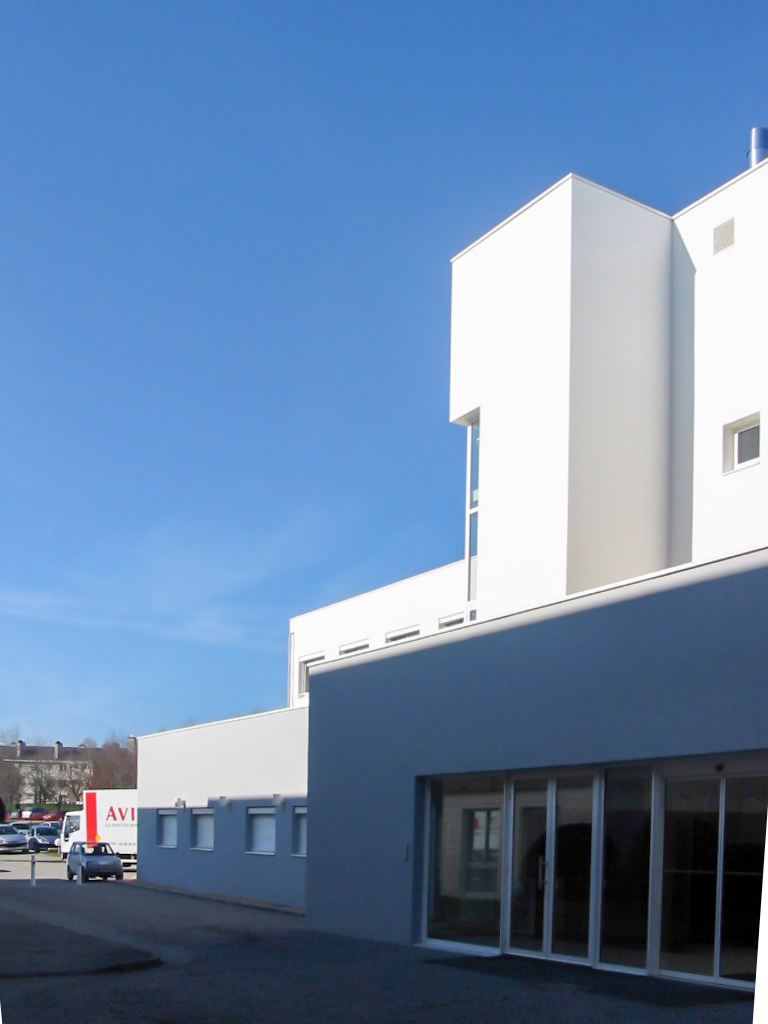 La volumétrie en deux ailes permet d’alléger les proportions de la nouvelle construction de manière à ne pas amoindrir les volumes de l’Hôpital qui restent dominants notamment par les superstructures en ardoise.