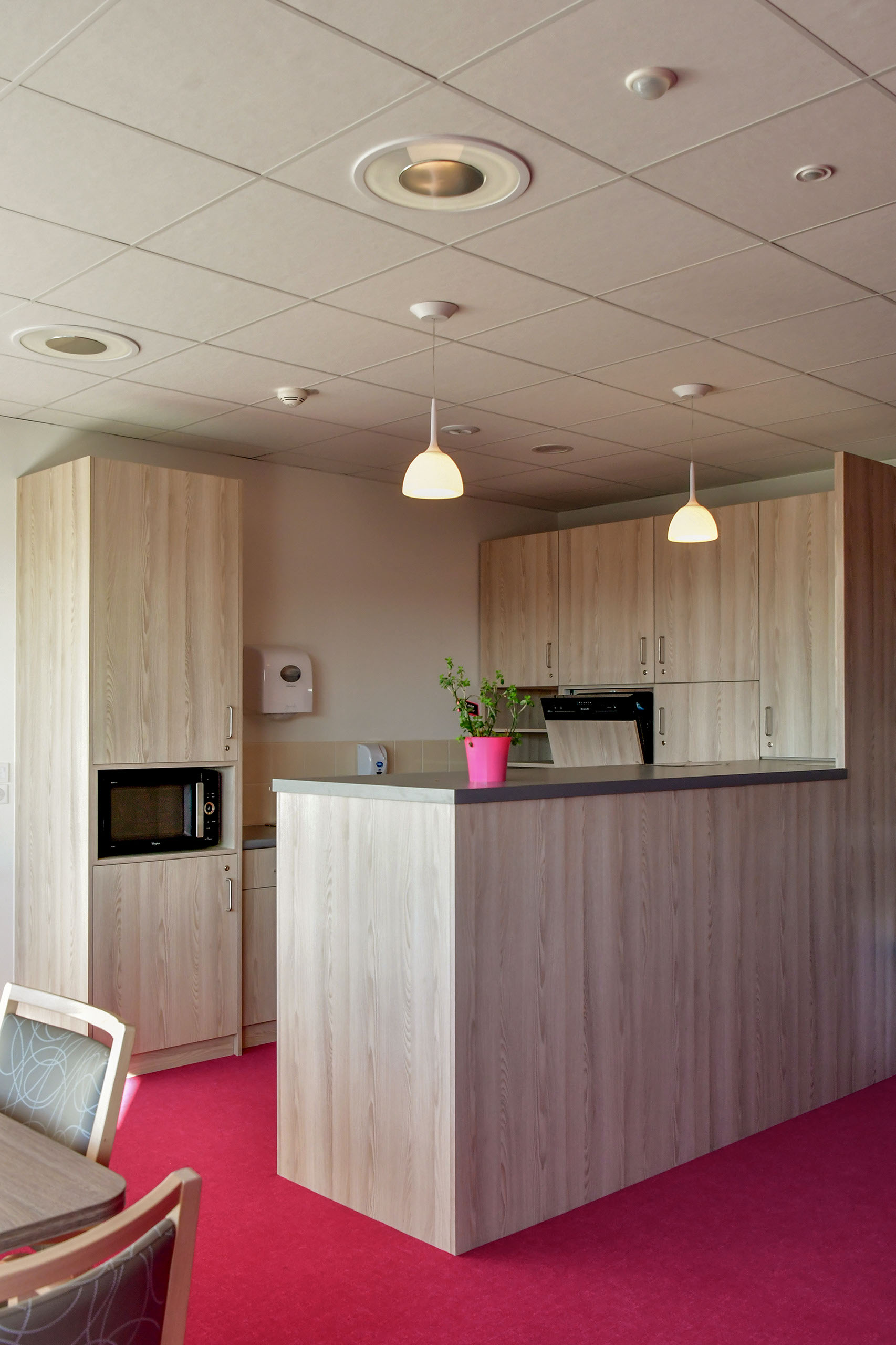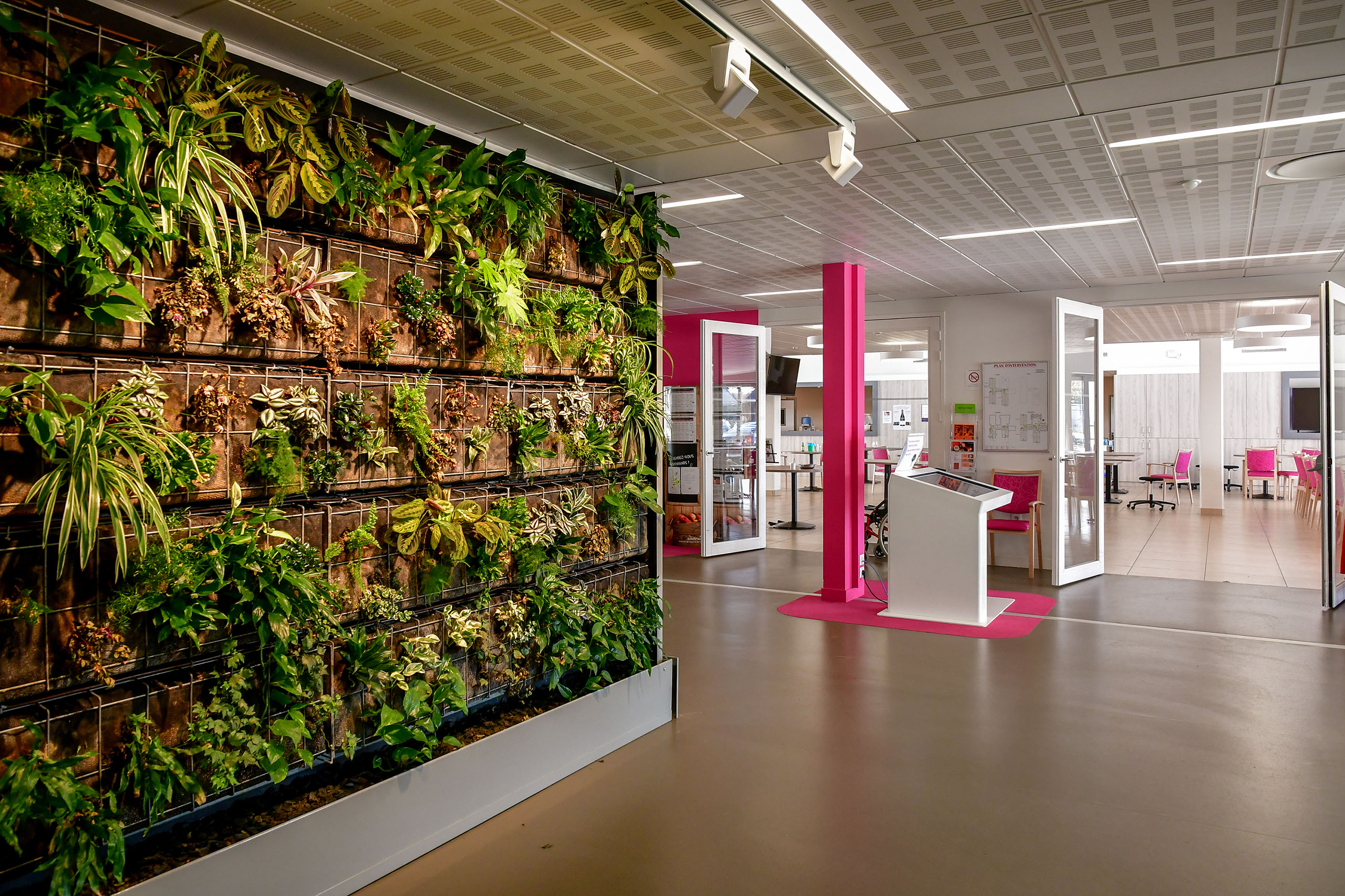 Le projet épouse au mieux le terrain et permet la création d’un rez-de-jardin semi-enterré accessible de plain-pied en partie nord et la partie sud permet l’accessibilité de la cuisine et de ses livraisons.