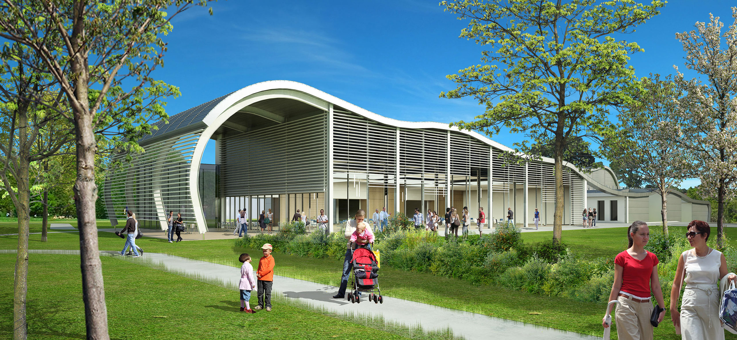 Le projet se caractérise par deux volumes, ondulant et s’entrelaçant le long d’une artère centrale.