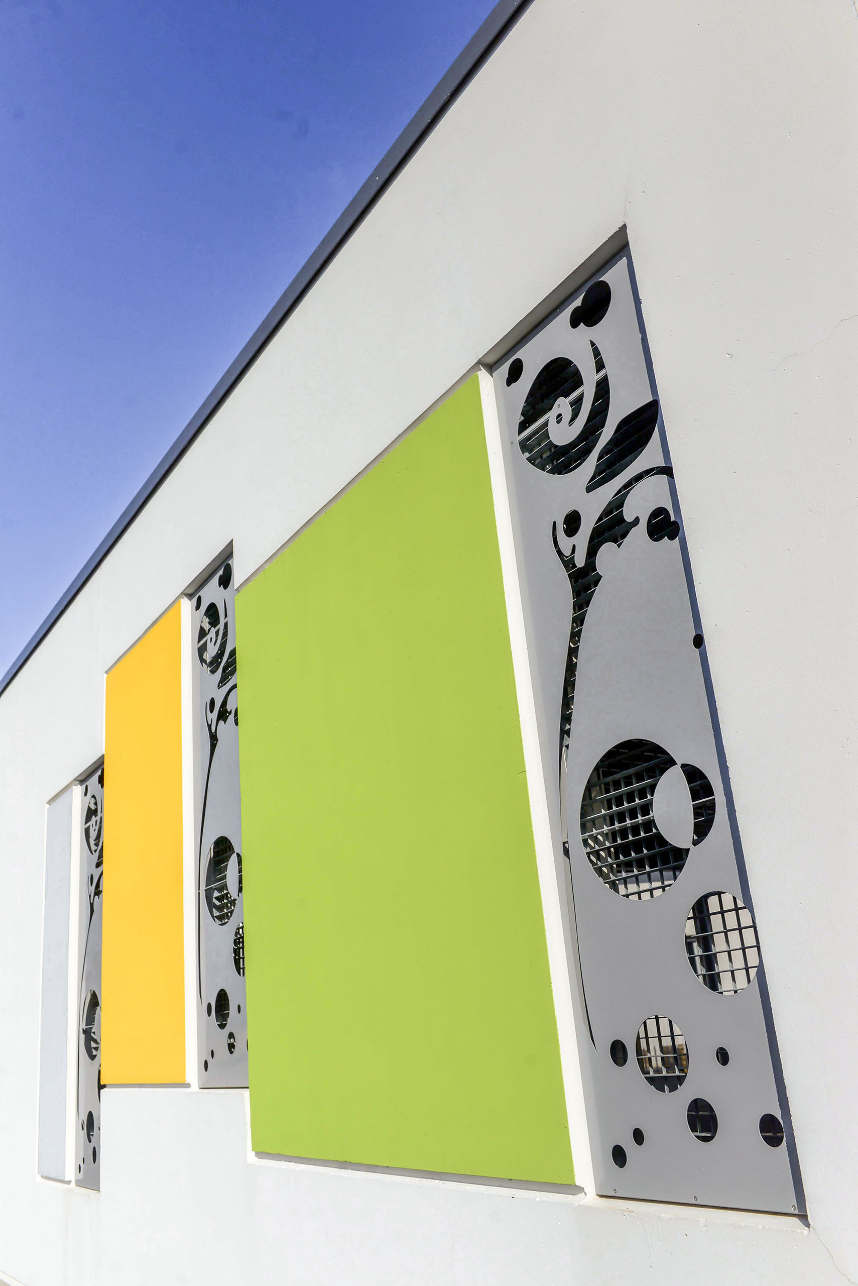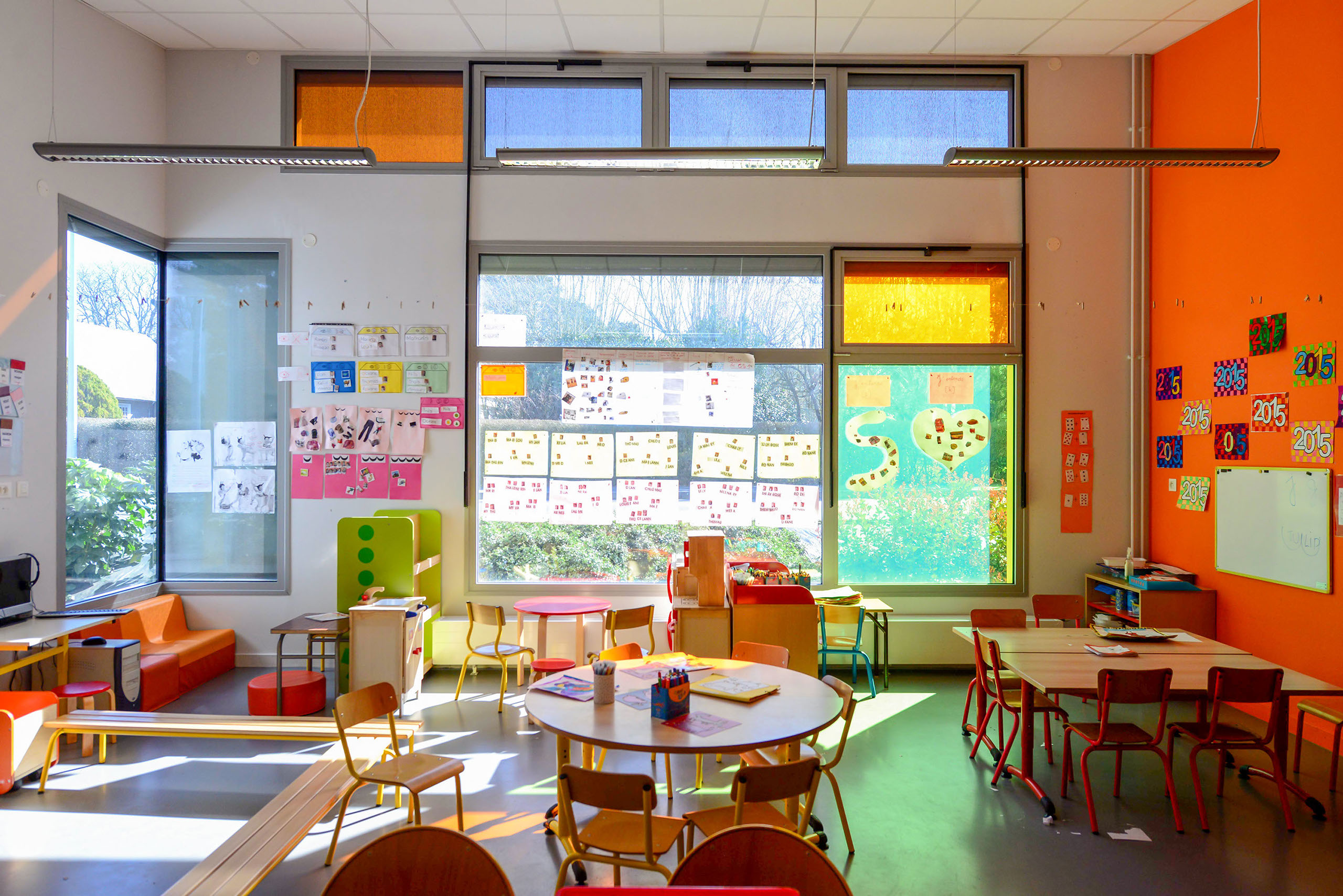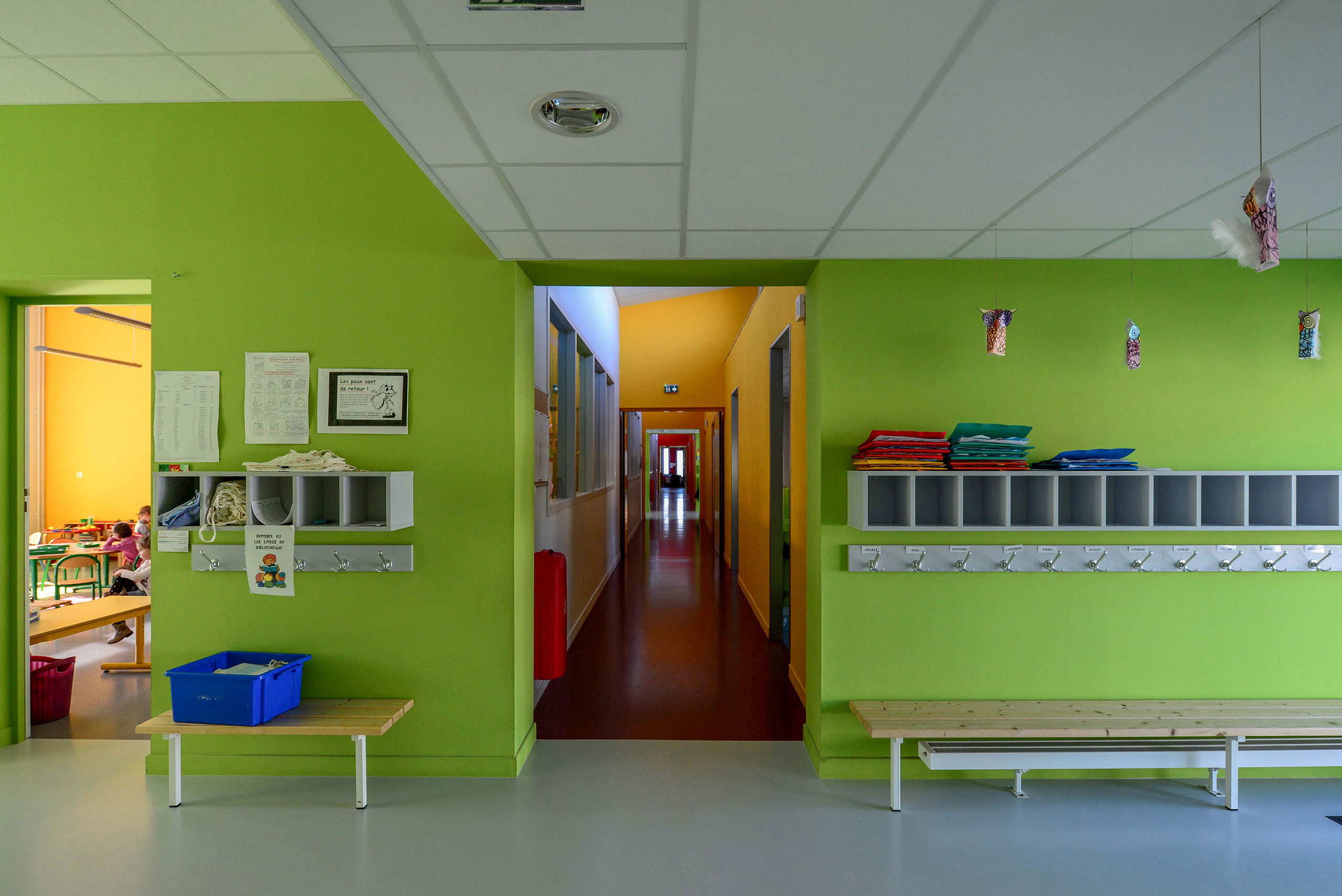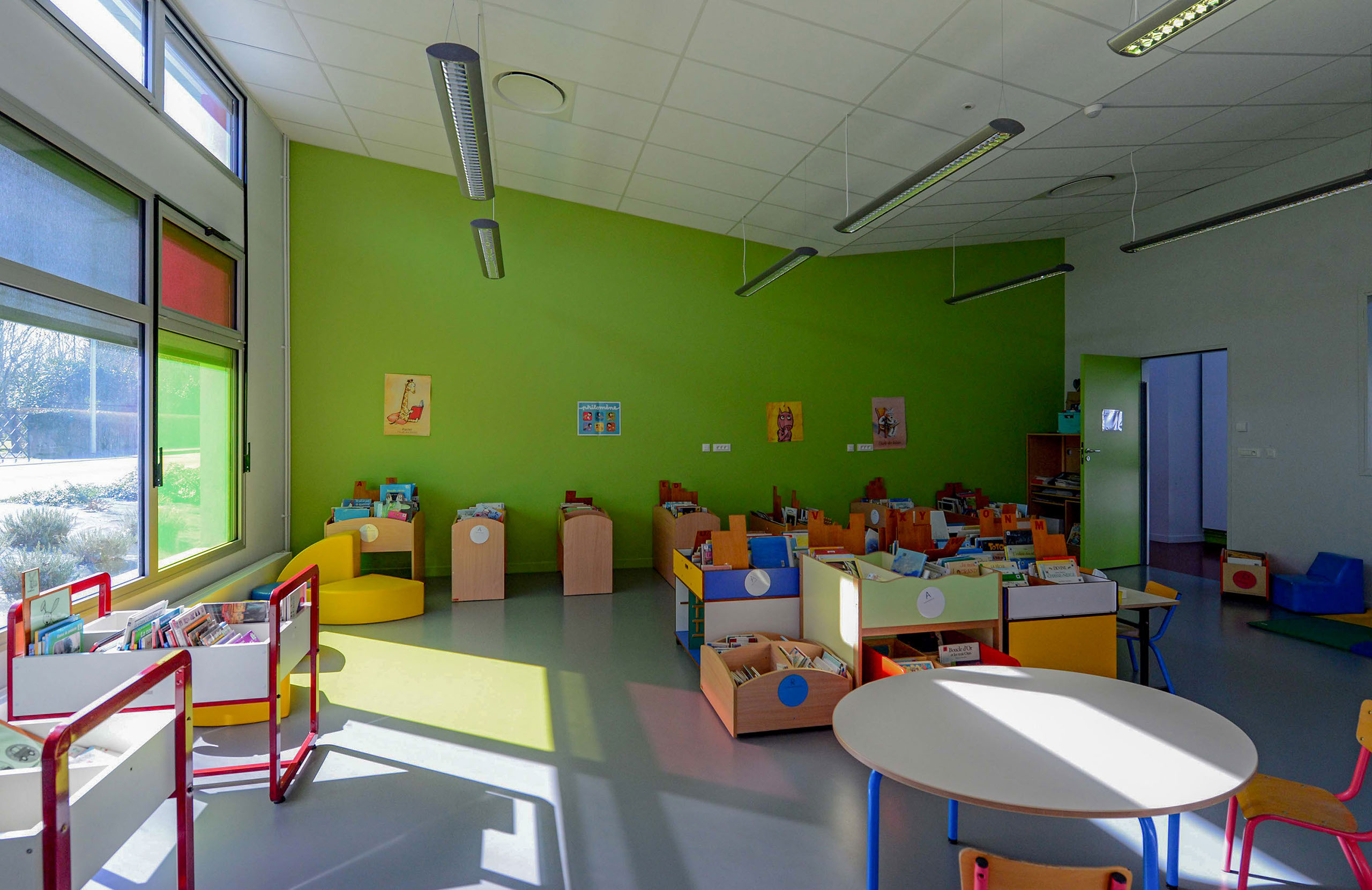 Il dégage des perspectives, s’affranchit de la rigidité orthogonale et conserve le caractère ludique qui convient à une école maternelle qui doit être la ; première étape de la découverte sensorielle des espaces, des volumes de la lumière, des transparences, des couleurs.