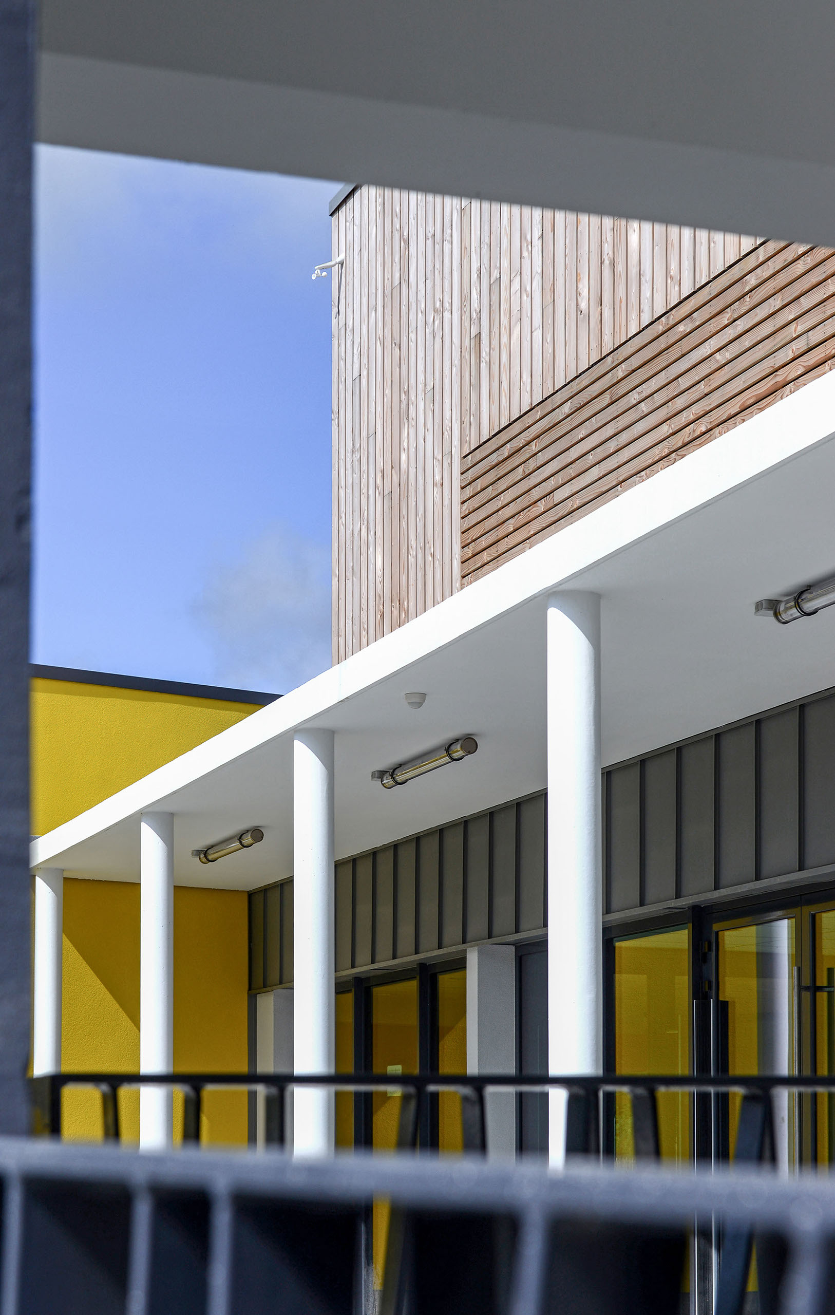 La mixité recherchée entre logements individuels et logements collectifs autour d’un axe fort que constitue le mail oriente le sens de notre projet vers une affirmation urbaine qui forme une proue à l’entrée du site.