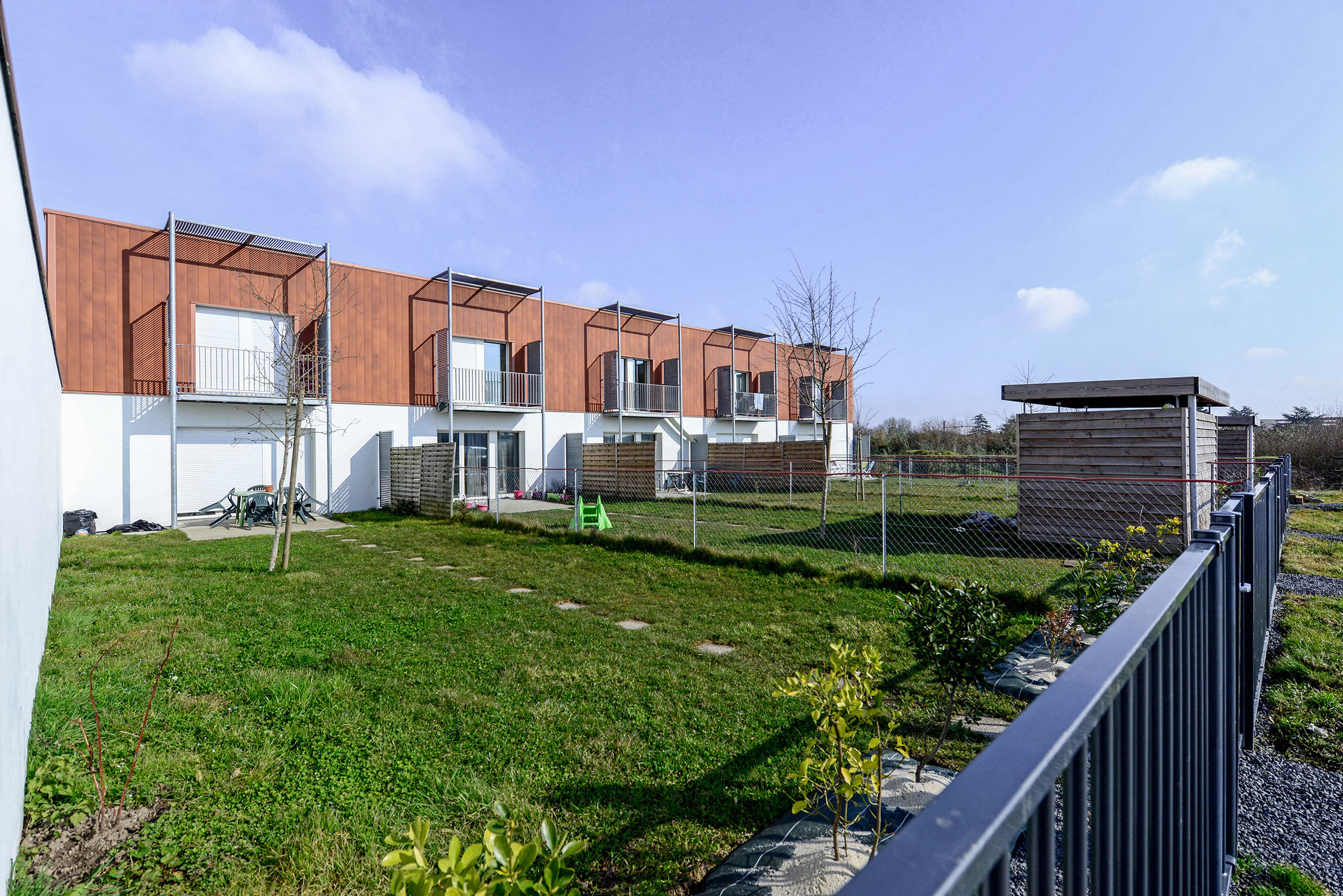Les maisons individuelles sont traités en bandes en retrait de 3m de la voie avec l’ensemble des entrées au Nord et les jardins au sud.