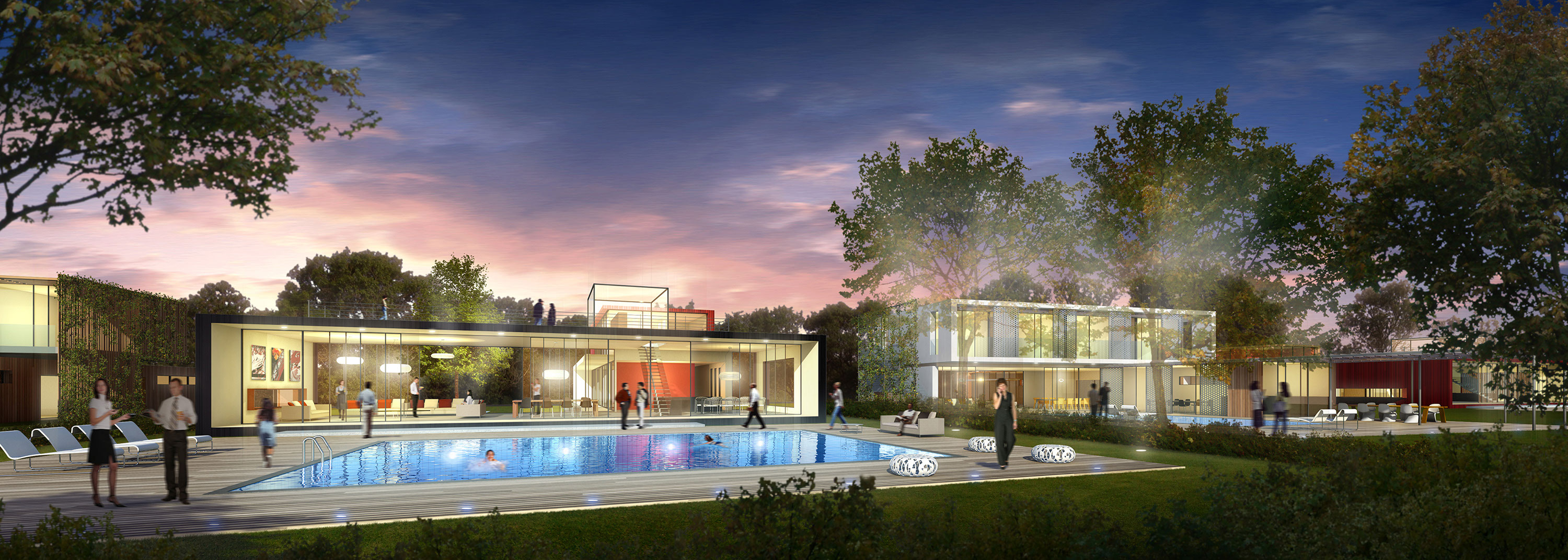 Chacune des maisons orientées, au sud, possède une grande terrasse ainsi qu’une piscine.