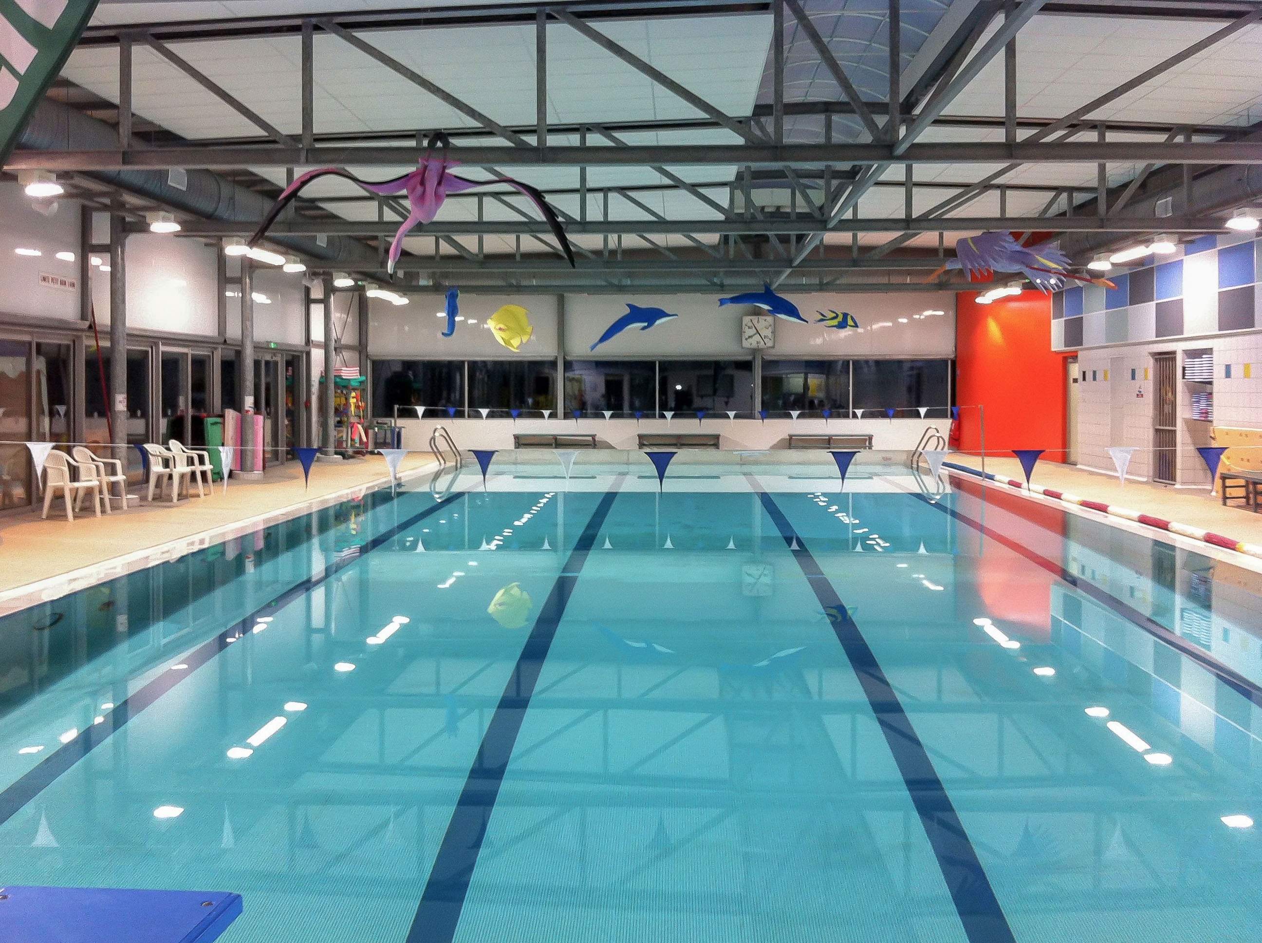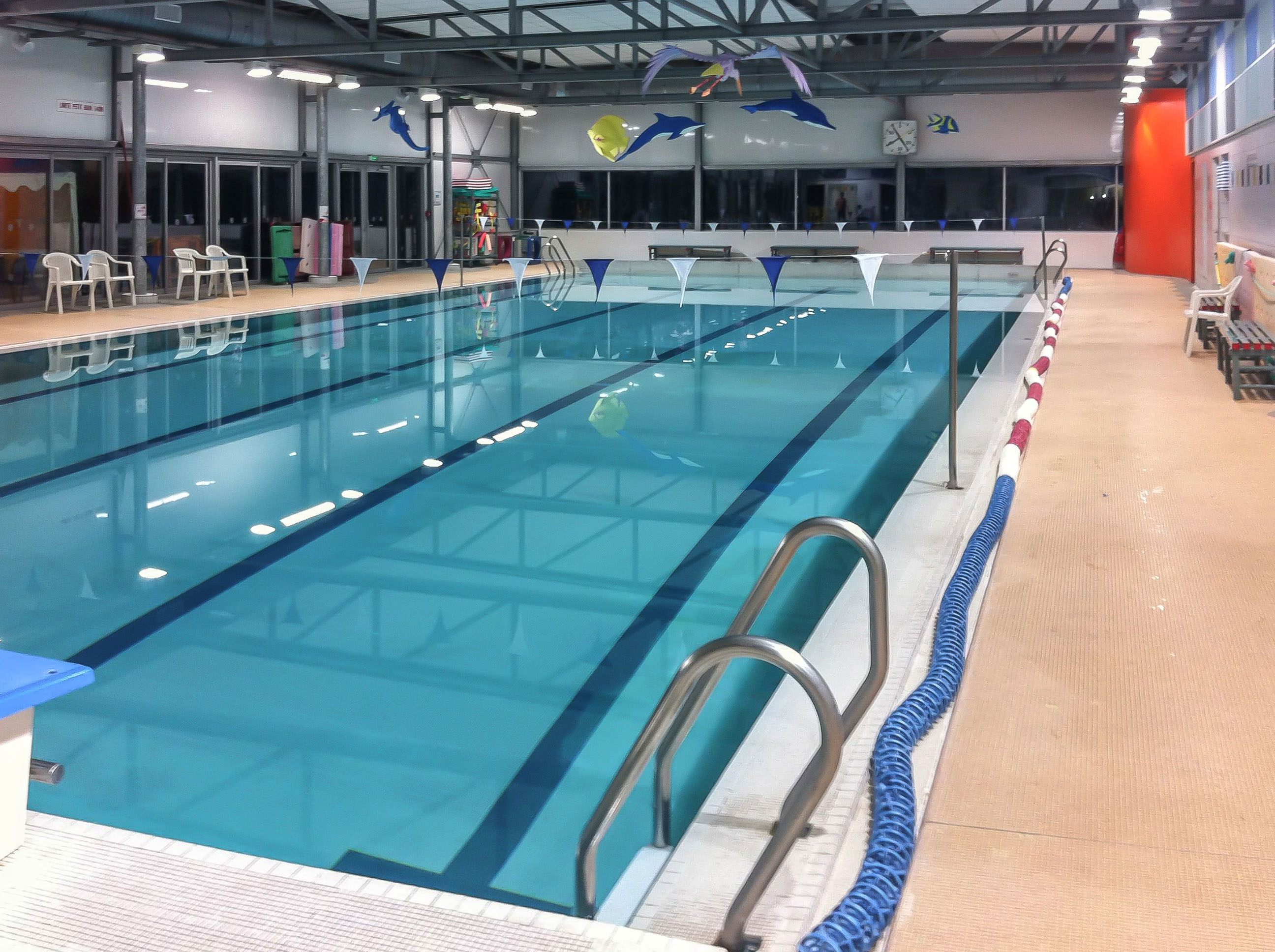 - l’aménagement intérieur de la piscine à RDC, avec la réhabilitation des vestiaires