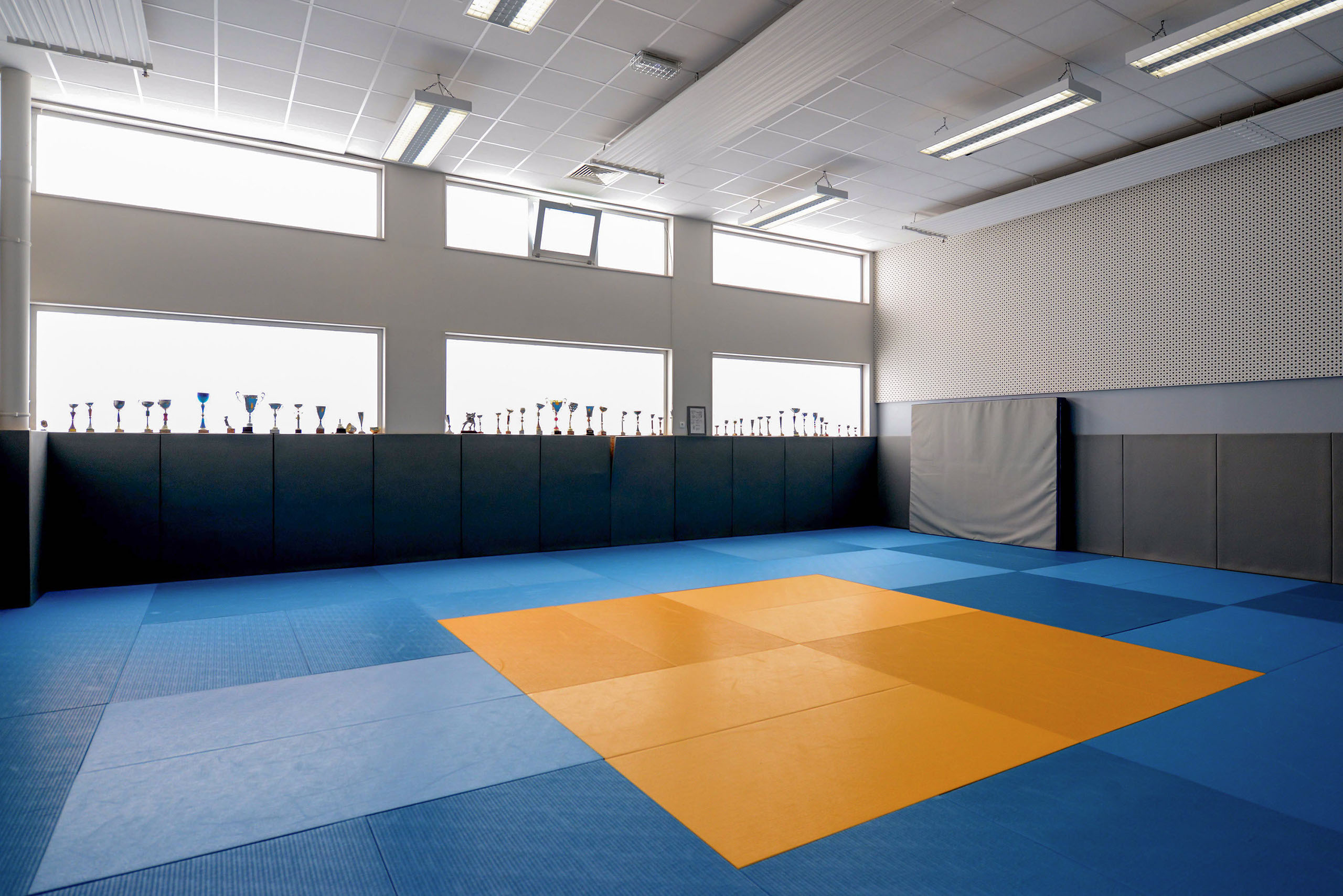 Le volume principal est un parallélépipède rectangle, composé d’une partie basse en bardage métallique et d’une partie haute en bardage polycarbonate alvéolaire, apportant une lumière naturelle tamisée.
