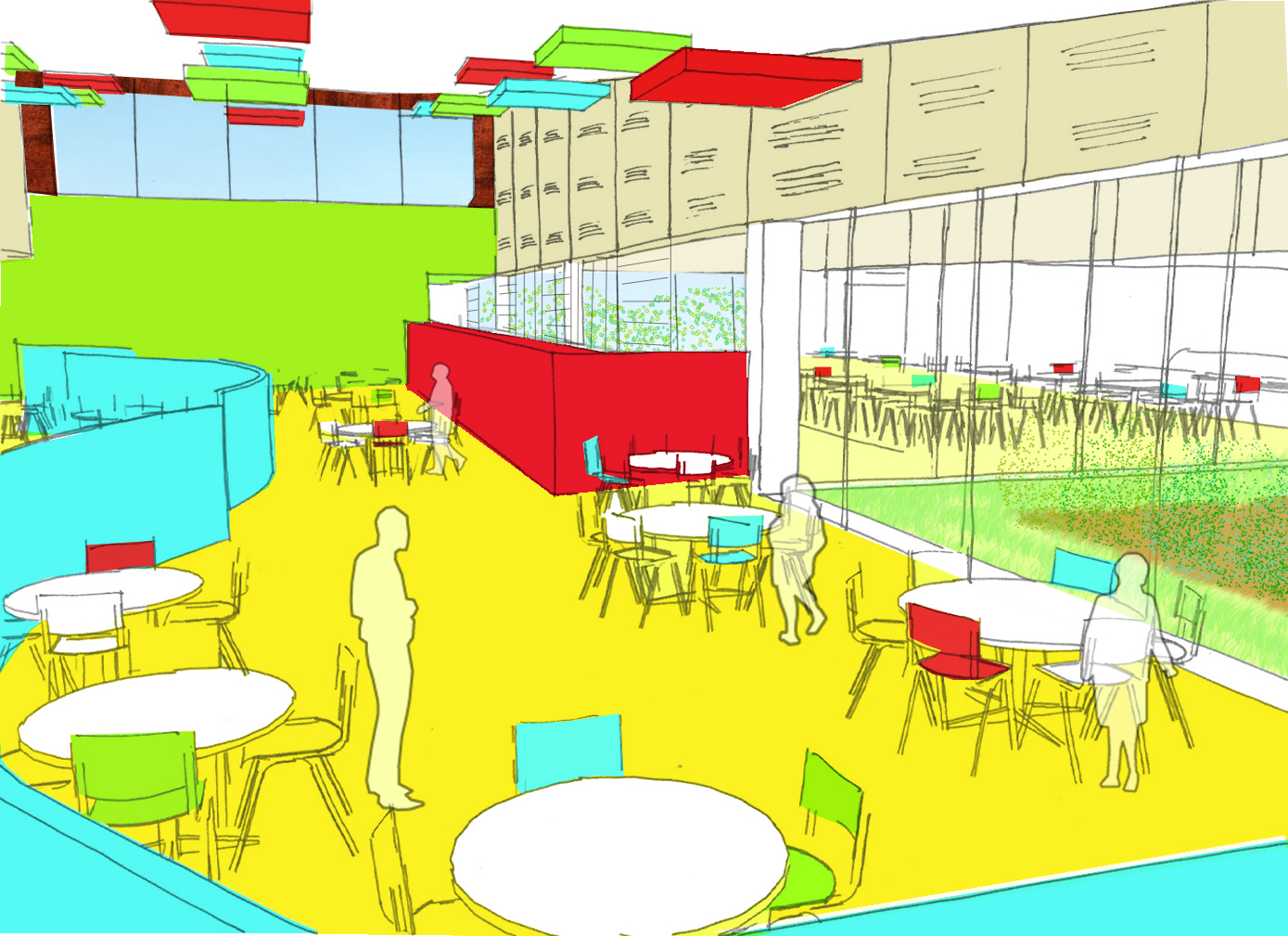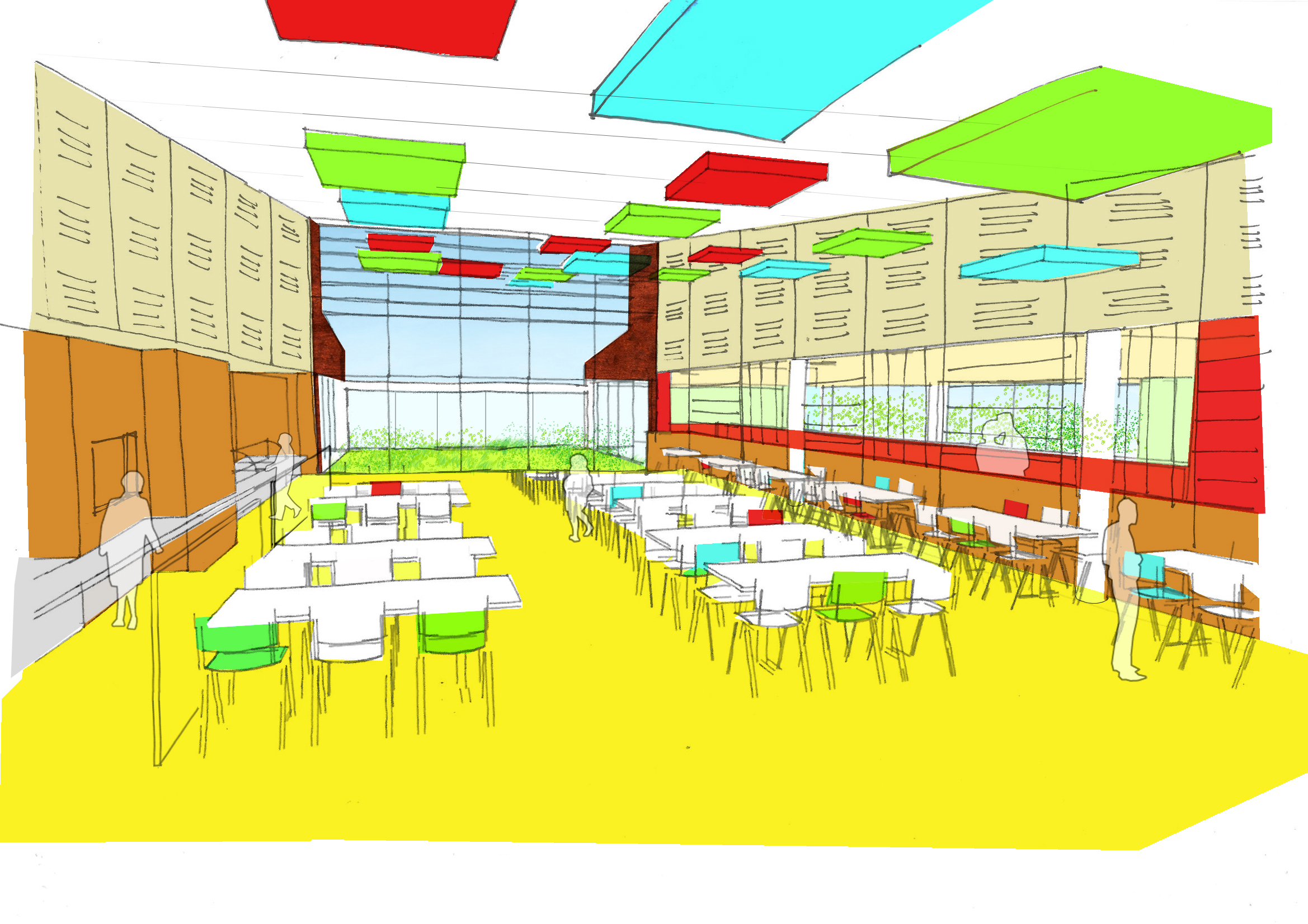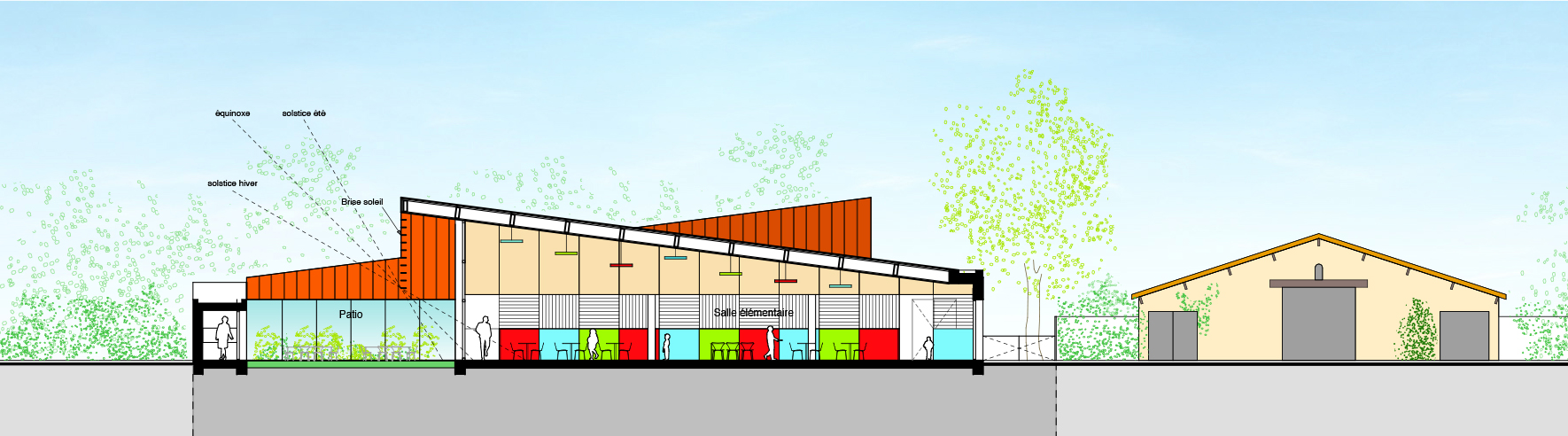 offrir aux enfants et au personnel un cadre de restauration calme et serein, lové dans son environnement, protégé des nuisances externes et peu dispensateur de gênes pour les voisins, afin que les enfants puissent prendre leur repas en toute sérénité en admirant tranquillement la végétation du patio et le potager de la cour.